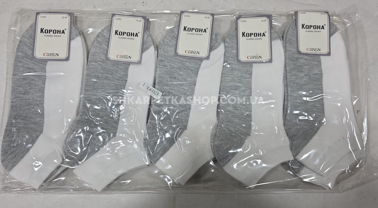 Шкарпетки "Корона" C-3193-1 стрейч /cotton підліткові, р. 32-38 -асорті -(Короткі -білий верх +сіра підошва -підліток) -уп. 10 шт
