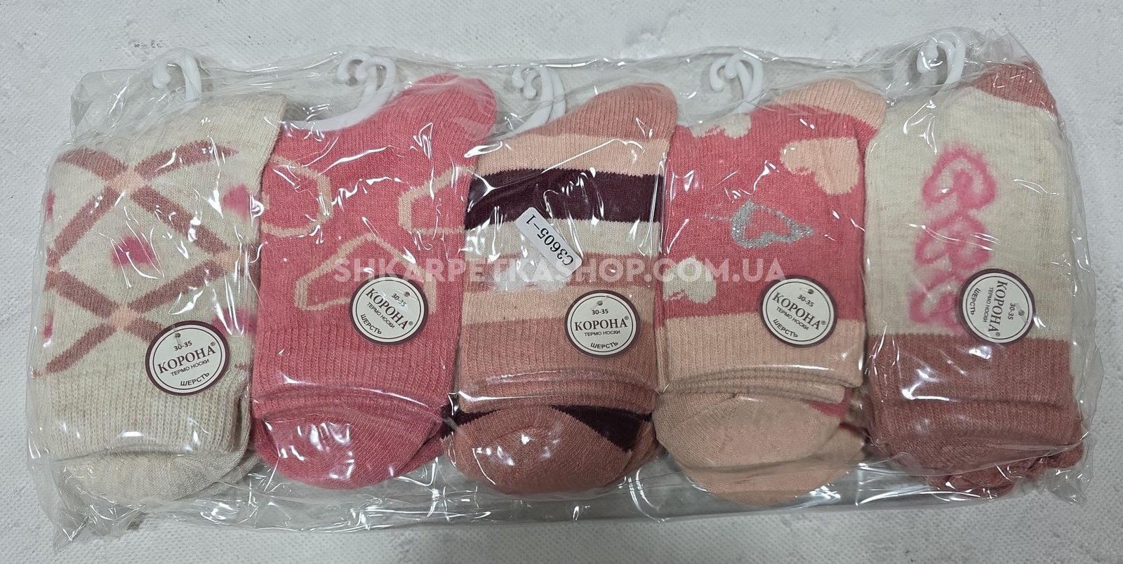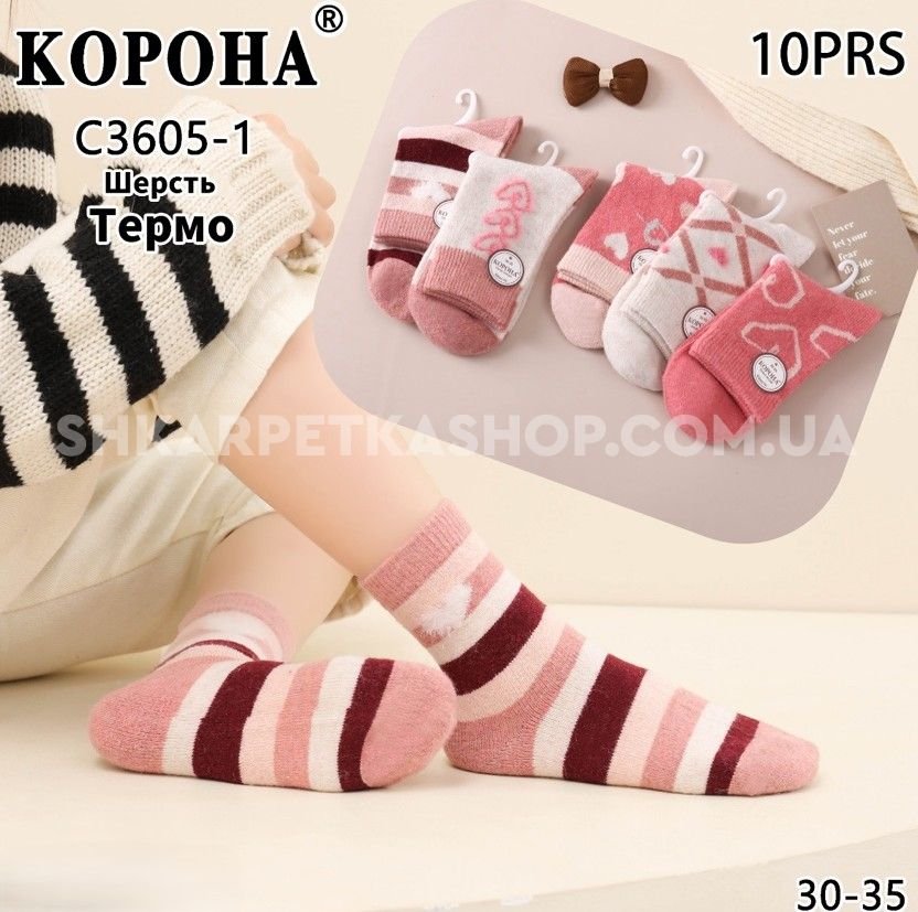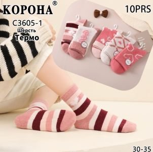 Шкарпетки "КОРОНА" C-3605-1 термо вовна дитячі, р. 30-35 -асорті -(Дівчинка -рожевий мікс) -уп. 10 шт