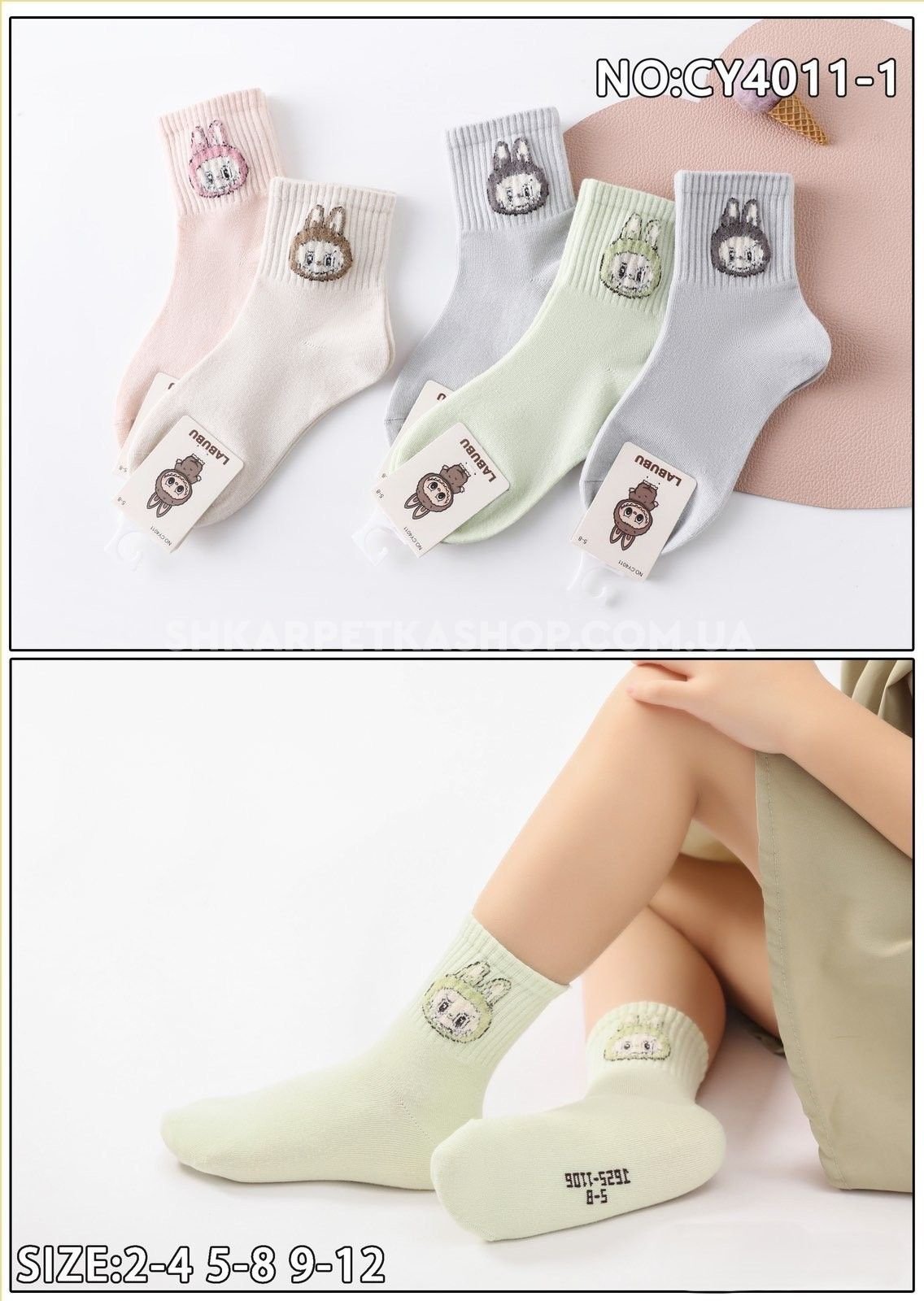 Шкарпетки "Корона" CY-4011-1 стрейч дитячі р. 2-4, 5-8, 9-12 років -асорті -(Дівчинка /однотонні +на високій гумці в рубчик Ла-бу-бу) -уп. 10 шт