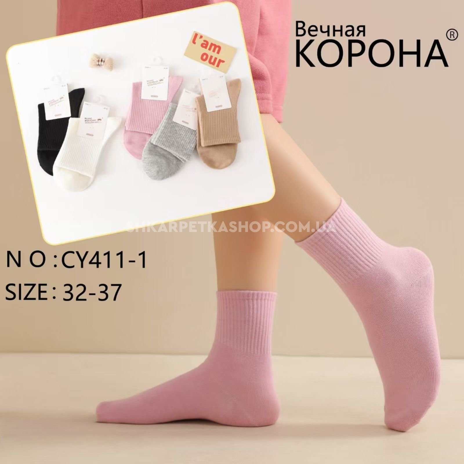 Шкарпетки "Корона" CY-411-1 стрейч підліткові, р. 32-37 -асорті -(Дівчинка /однотонні з високою гумкою в рубчик) -уп. 10 шт