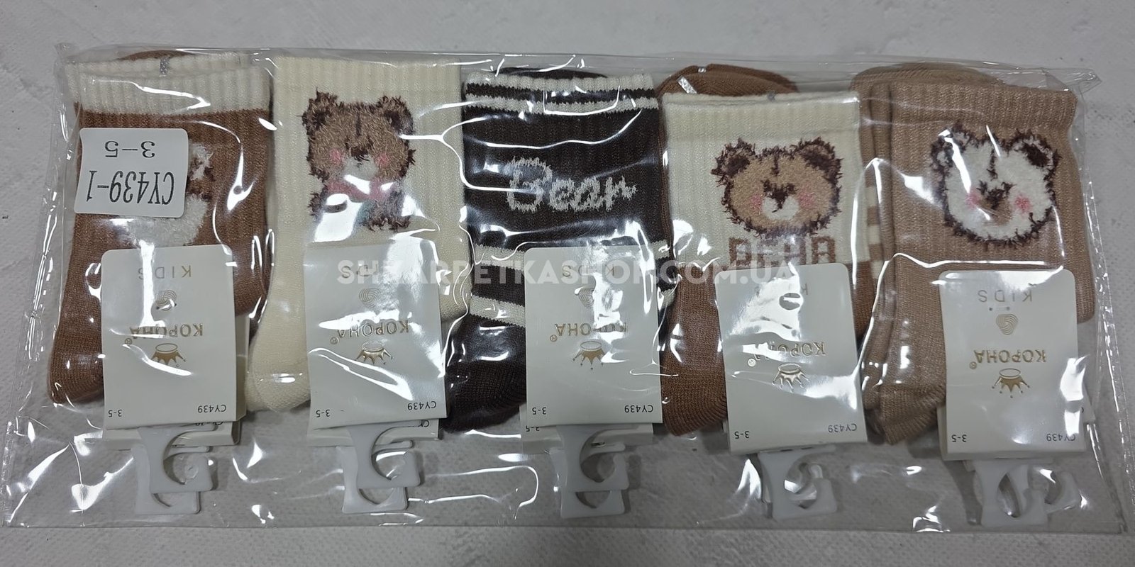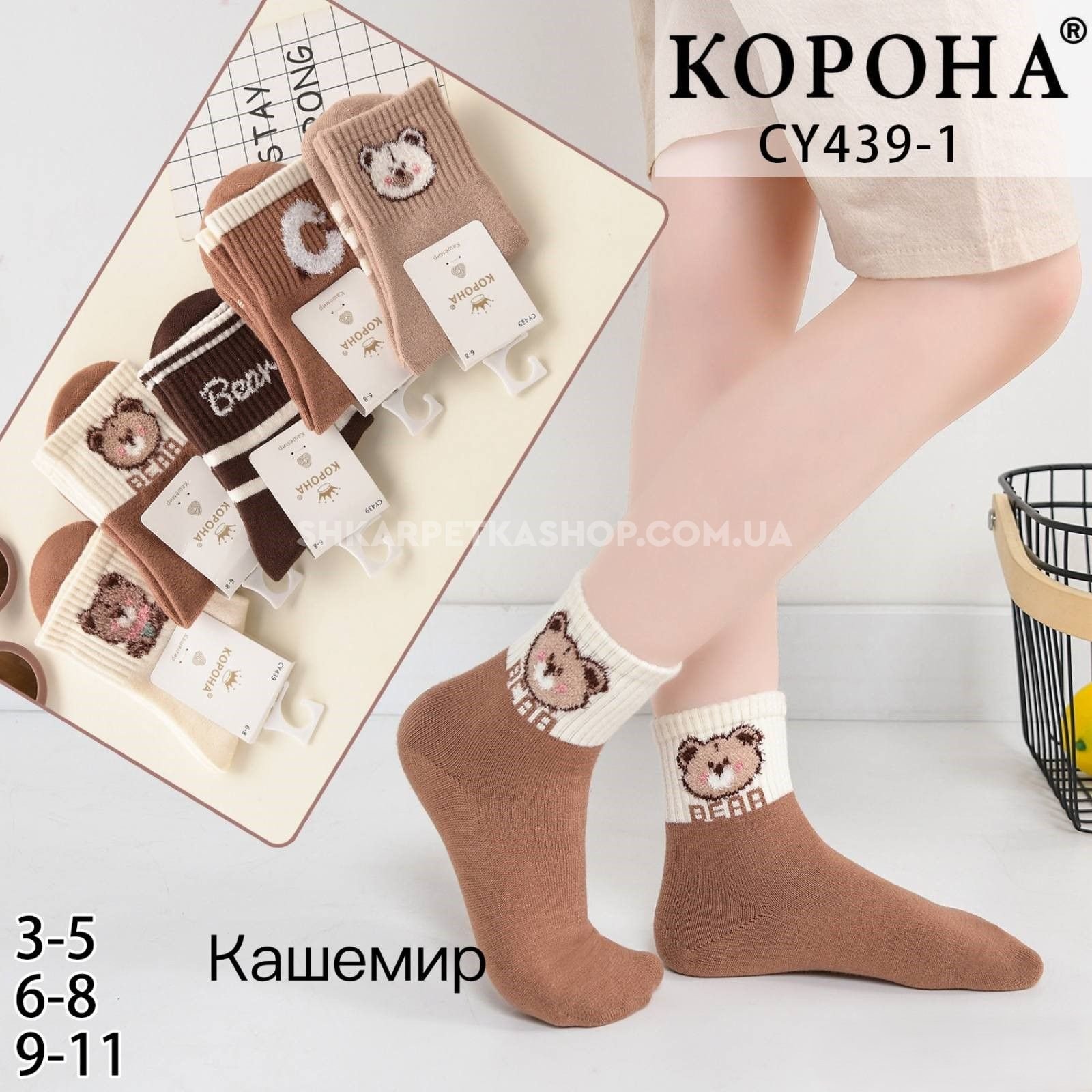 Шкарпетки "КОРОНА" CY-439-1 кашемір дитячі, р. 3-5, 6-8, 9-11 років -асорті -(Кавовий мікс +на гумці мікс мордочок ведмедів +написи) -уп. 10 шт