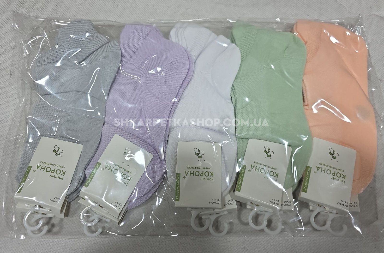 Шкарпетки "Корона" CY-460-2 сітка /cotton підліткові р. 32-37 -асорті -(Дівчинка -короткі -однотонні +ззаду на п'яті виступ / язичок) -уп. 10 шт
