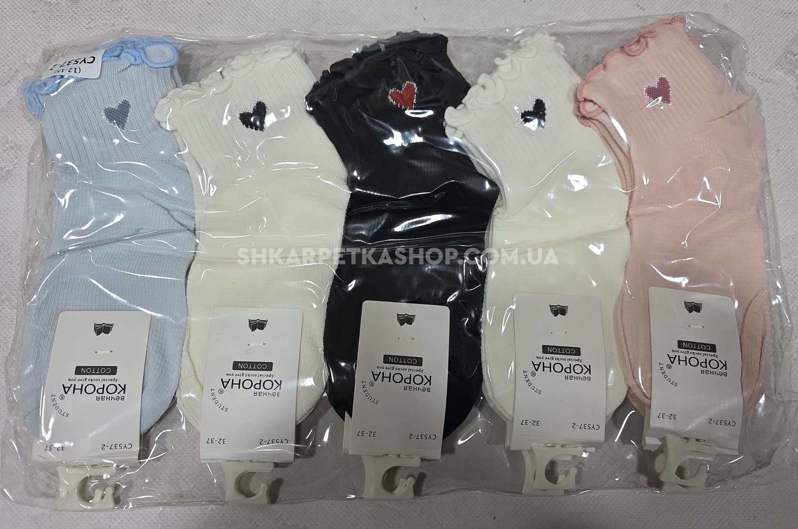 Шкарпетки "Корона" CY-537-2 стрейч підліткові р. 32-37 -асорті -(Дівчинка -однотонні з сітчастою в'язкою +збоку на резинці в рубчик серце +хвиляста окантовка на резинці) -уп. 10 шт