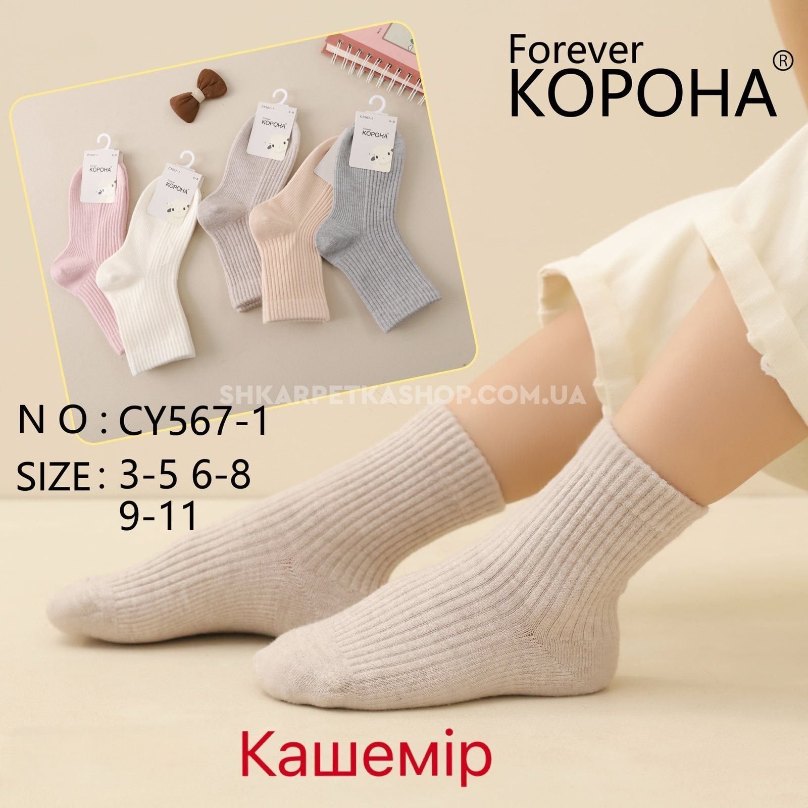 Шкарпетки "КОРОНА" CY-567-1 кашемір дитячі, р. 3-5, 6-8, 9-11 років -асорті -(Дівчинка /однотонні високі в рубчик) -уп. 10 шт