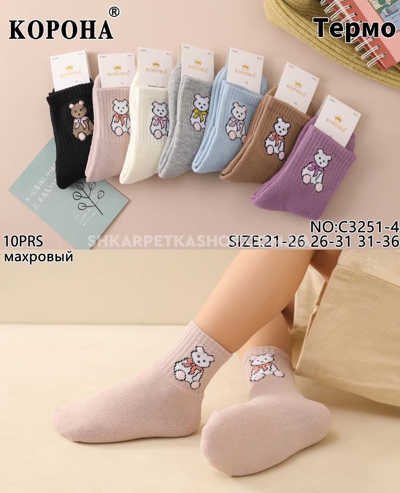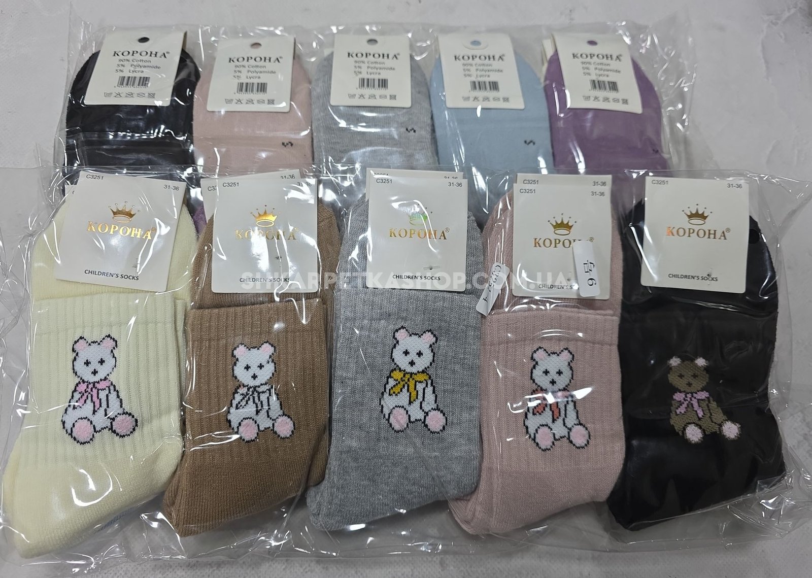 Шкарпетки "КОРОНА" С-3251-4 махрові дитячі на розмір взуття: р. 21-26, 26-31, 31-36 -асорті -(Дівчинка -+ на гумці в рубчик великий ведмедик) -уп. 10 шт