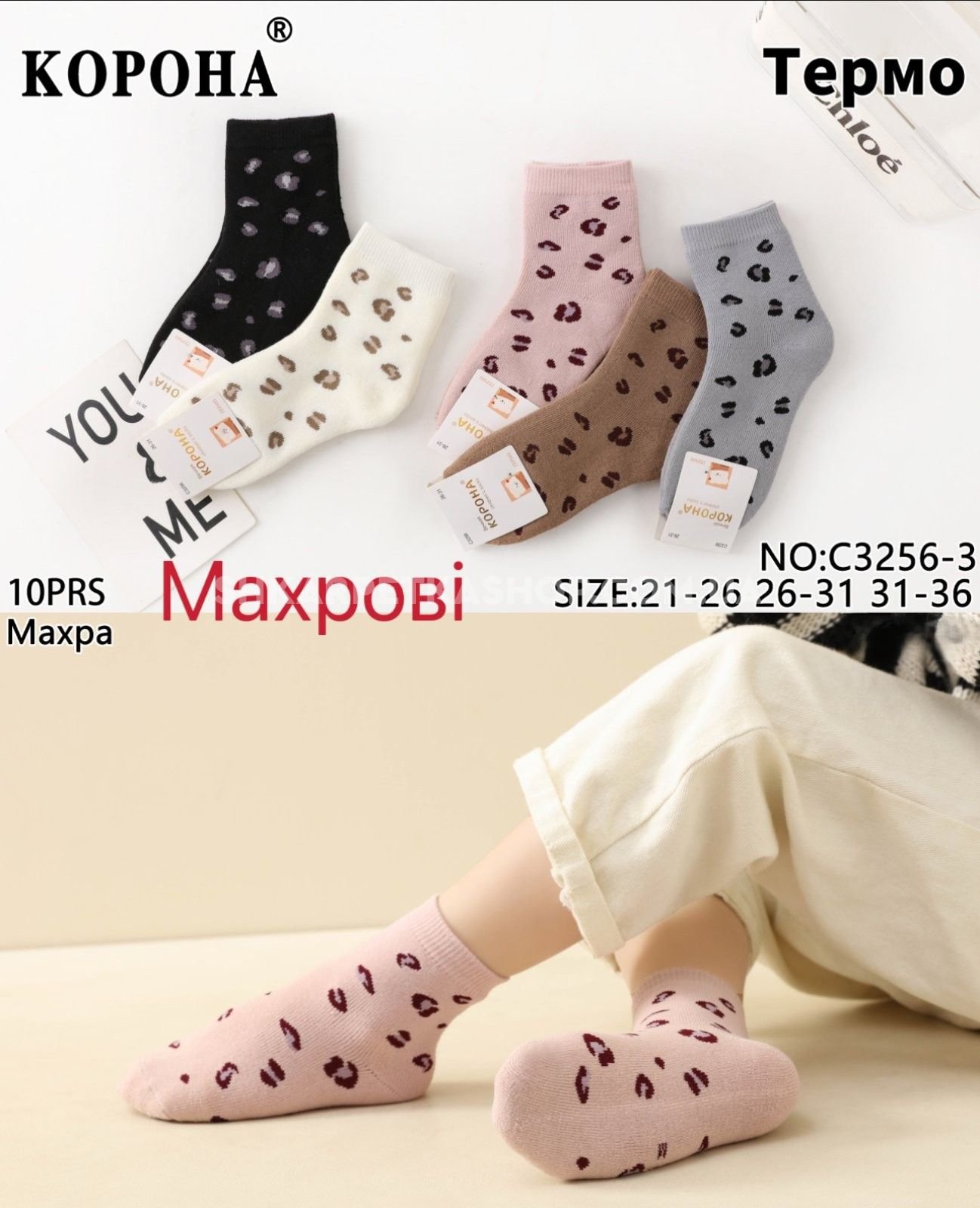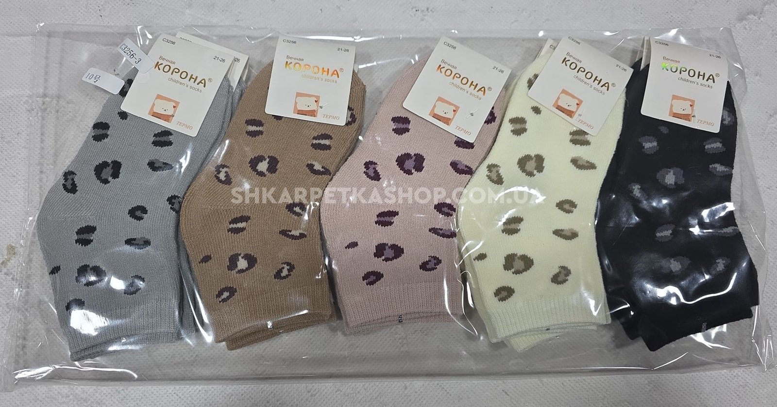 Шкарпетки "КОРОНА" С-3256-3 махрові дитячі на розмір взуття: р. 21-26, 26-31, 31-36 -асорті -(Дівчинка -з леопардовим принтом) -уп. 10 шт