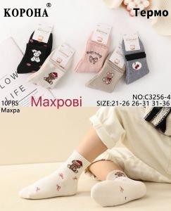 Шкарпетки "КОРОНА" С-3256-4 махрові дитячі на розмір взуття: р. 21-26, 26-31, 31-36 -асорті -(Дівчинка -мікс різних малюнків на широкій резинці в рубчик) -уп. 10 шт