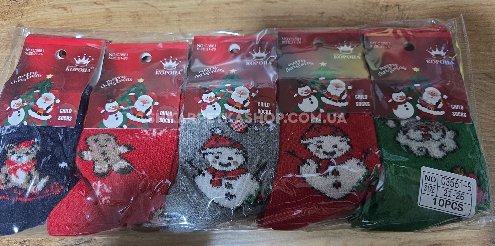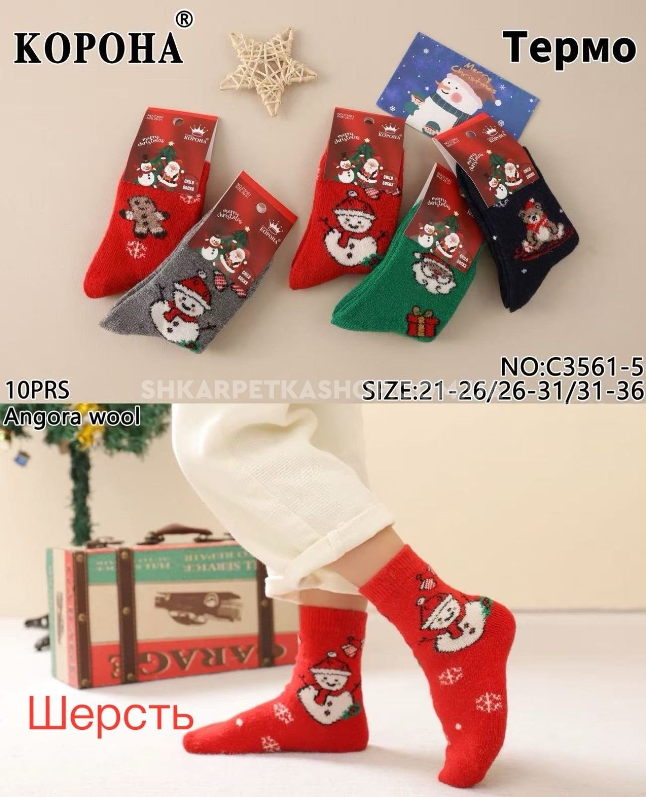 Шкарпетки "КОРОНА" С-3561-5 ангора вовна дитячі на розмір взуття: р. 21-26, 26-31, 31-36 -асорті -(Новорічний мікс) -уп. 10 шт