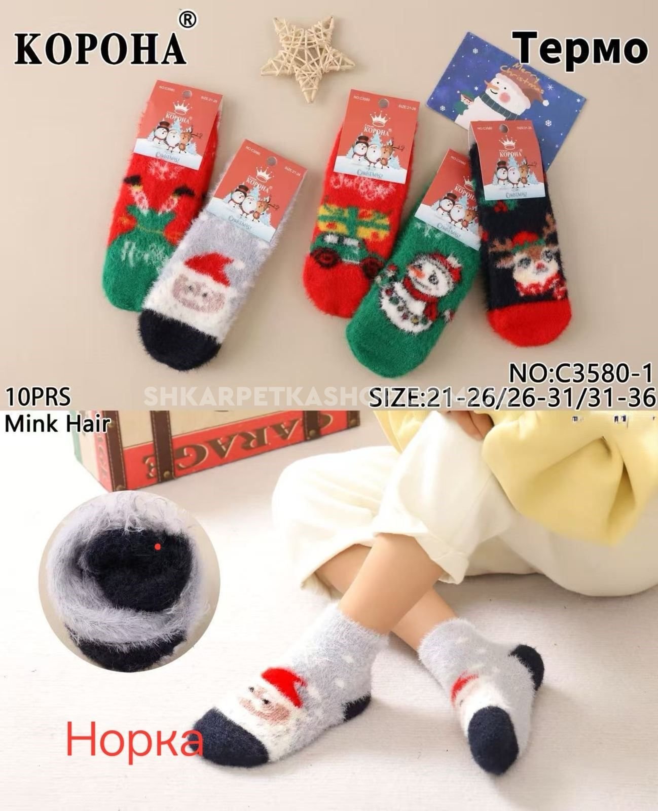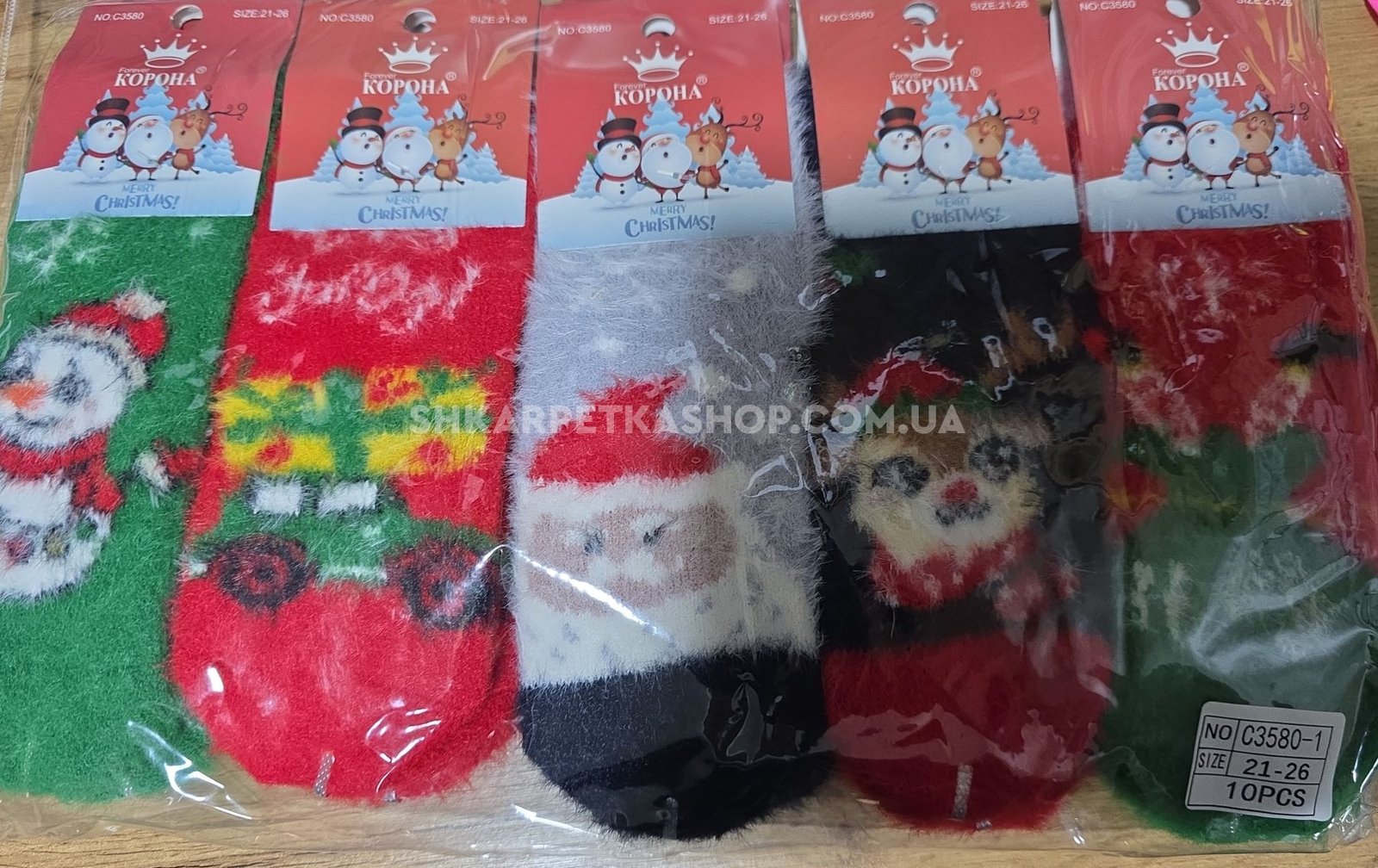 Шкарпетки "КОРОНА" С-3580-1 норка-ангора дитячі на розмір взуття: р. 21-26, 26-31, 31-36 -асорті -(Новорічний мікс) -уп. 10 шт