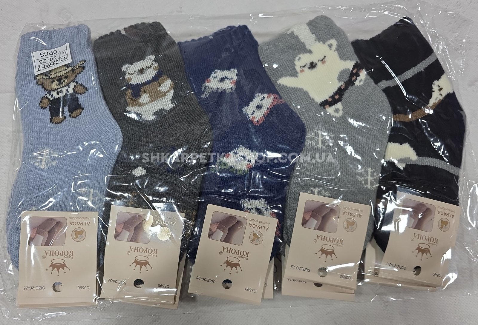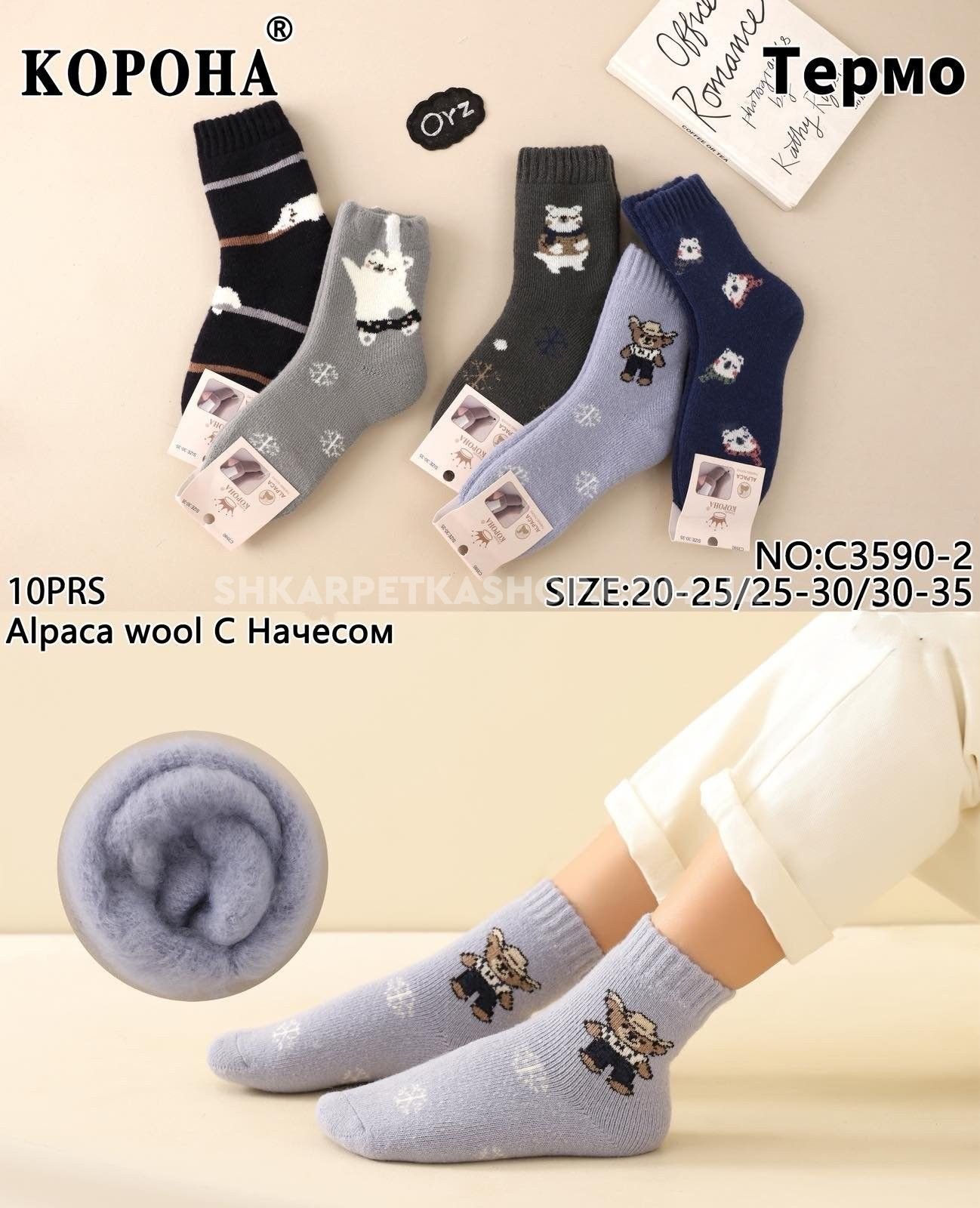 Шкарпетки "КОРОНА" С-3590-2 термо альпака з начісом дитячі, на розмір взуття: р. 20-25, 25-30, 30-35 -асорті -(Хлопчик -темні +мікс ведмедів) -уп. 10 шт
