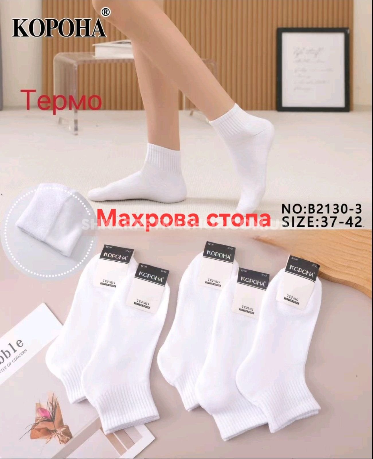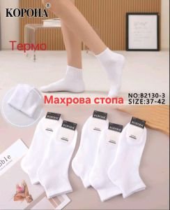 Шкарпетки "КОРОНА" В-2130-3 термо напівмахрові /махрова стопа жін, р. 37-42 -(Білі +середня гумка в рубчик +махрова підошва /стопа -жін.) -уп. 10 шт