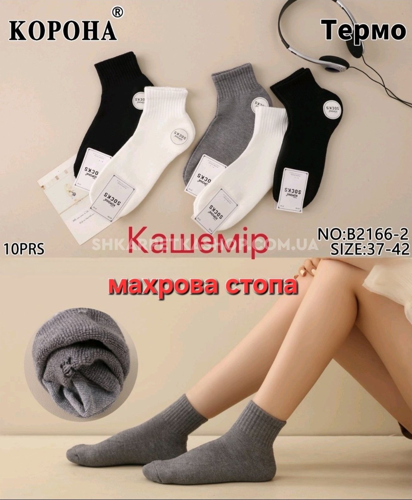 Шкарпетки "КОРОНА" В-2166-2 термо кашемір напівмахрові /махрова стопа жін, р. 37-42 -асорті -(Однотонні -сірі /білі /чорні +середня гумка в рубчик +махрова підошва /стопа -жін.) -уп. 10 шт