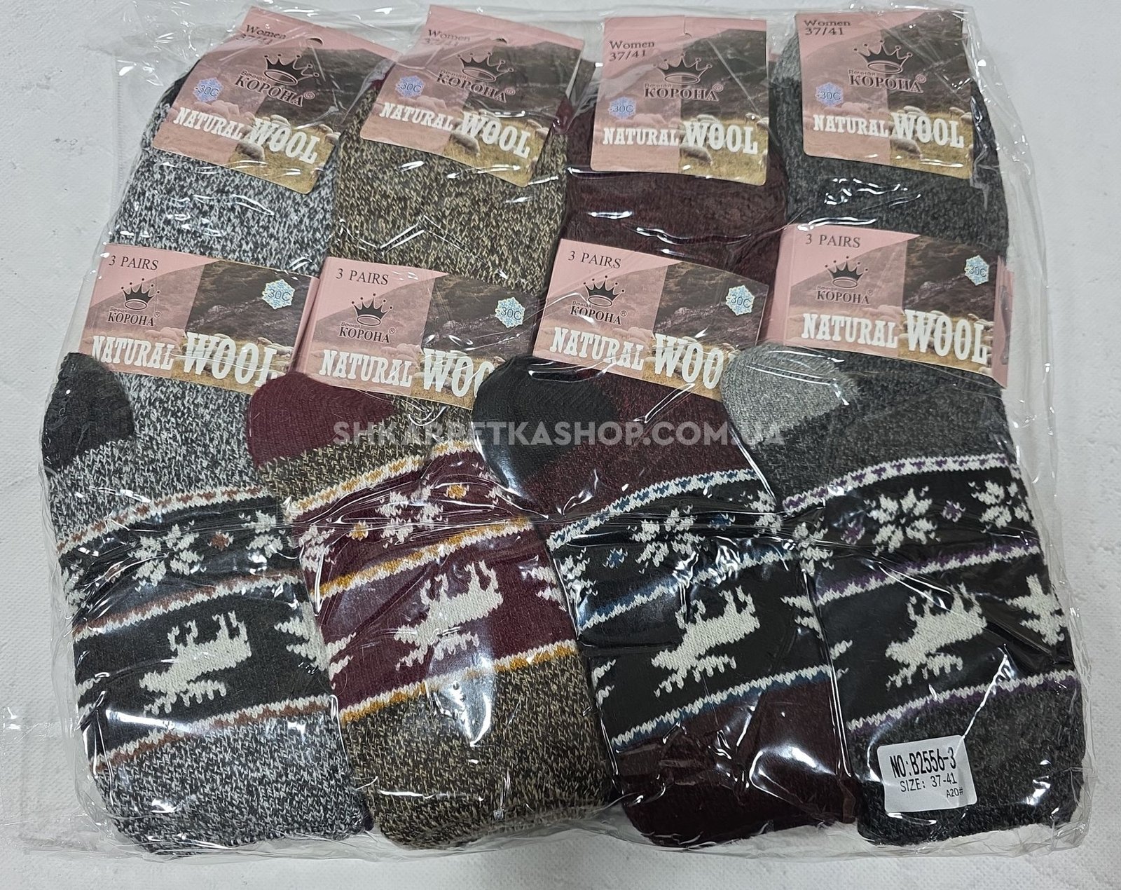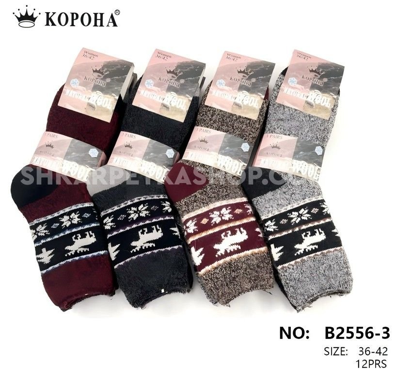 Шкарпетки "КОРОНА" В-2556-3 термо ангора вовна на махрі жіночі, р. 36-42 асорті -(Меланжеві в'язані +з широким орнаментом з оленями під гумкою-жін.) -уп. 12 шт