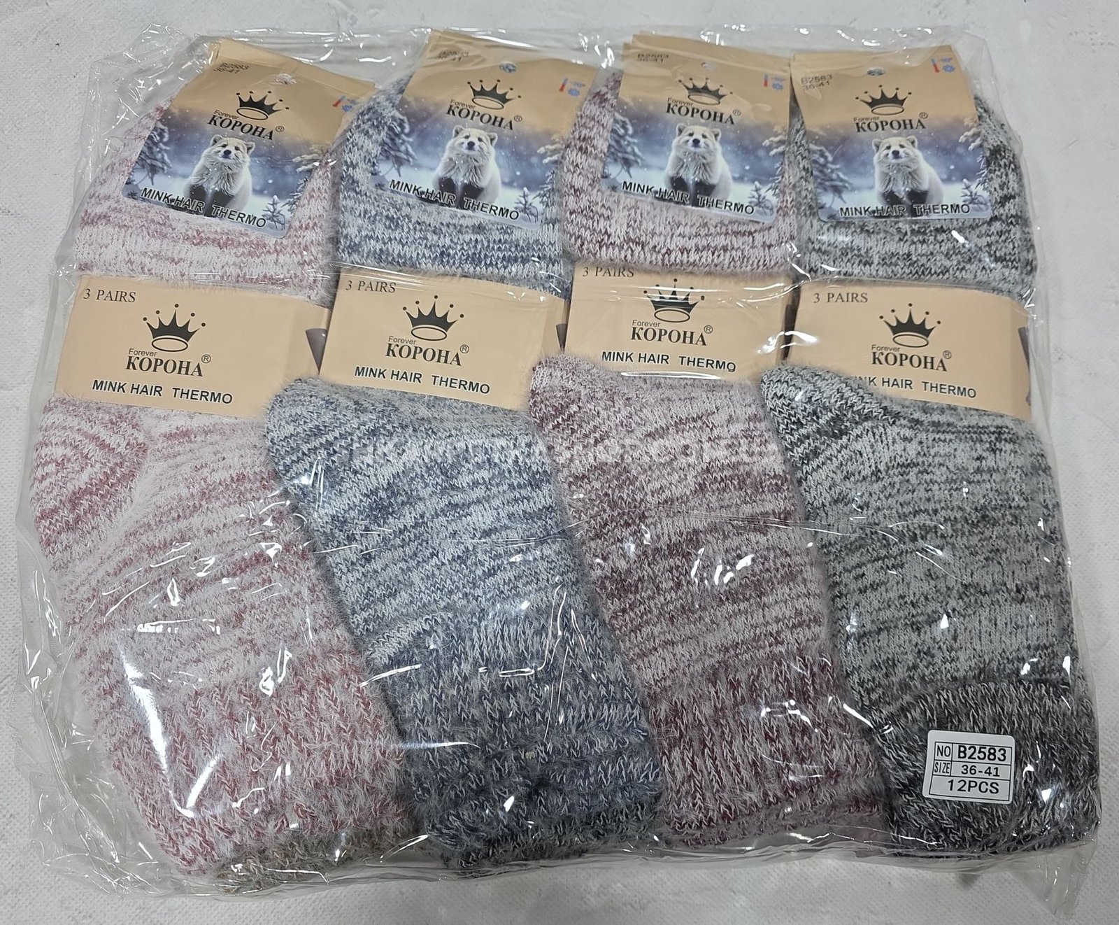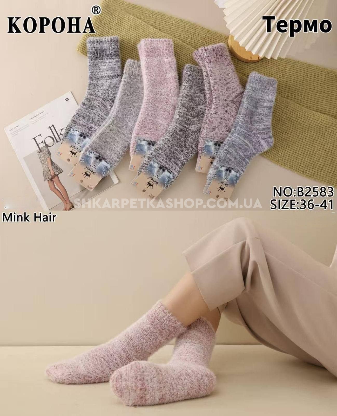 Шкарпетки "Корона" В-2583 термо норка вовна махрові жіночі, р. 36-41 -асорті -(Високі /меланжеві з пухнастою ниткою) -уп. 12 шт