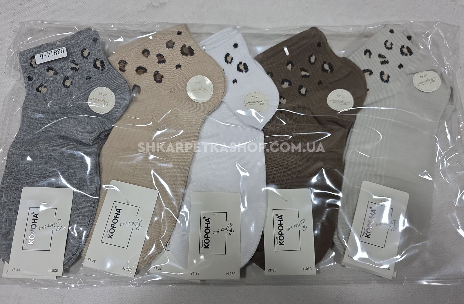 Шкарпетки "Корона" В-2814-6 стрейч жіночі, р. 37-42 -асорті -(Укорочені /однотонні в рубчик +на гумці в дрібний рубчик леопардові цятки) -уп. 10 шт