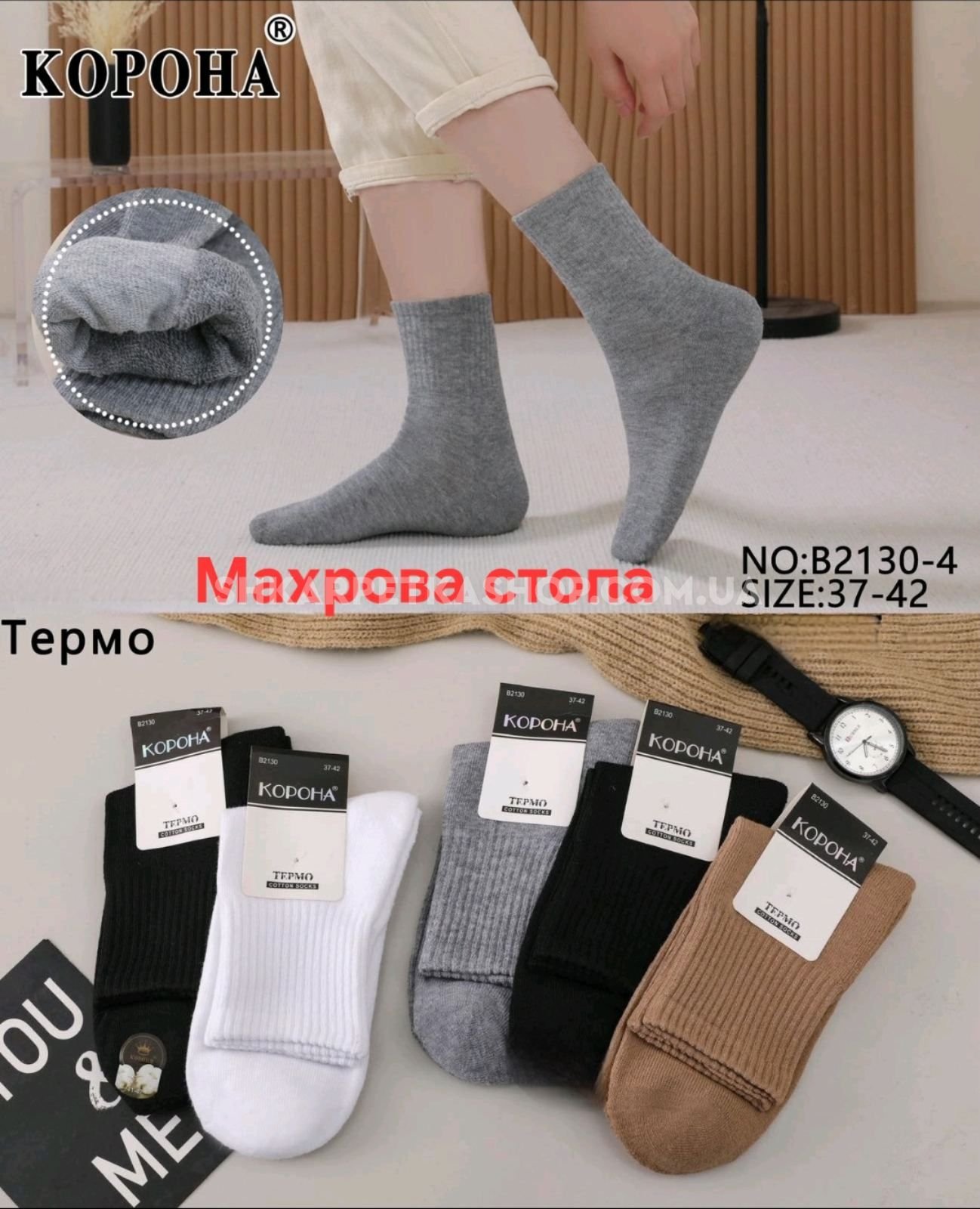 Шкарпетки "КОРОНА" В-2130-4 термо напівмахрові/ з махровою стопою жіночі, р. 37-42 -асорті -(однотонні з високою гумкою в рубчик +махрова підошва /стопа -жін.) -уп. 10 шт