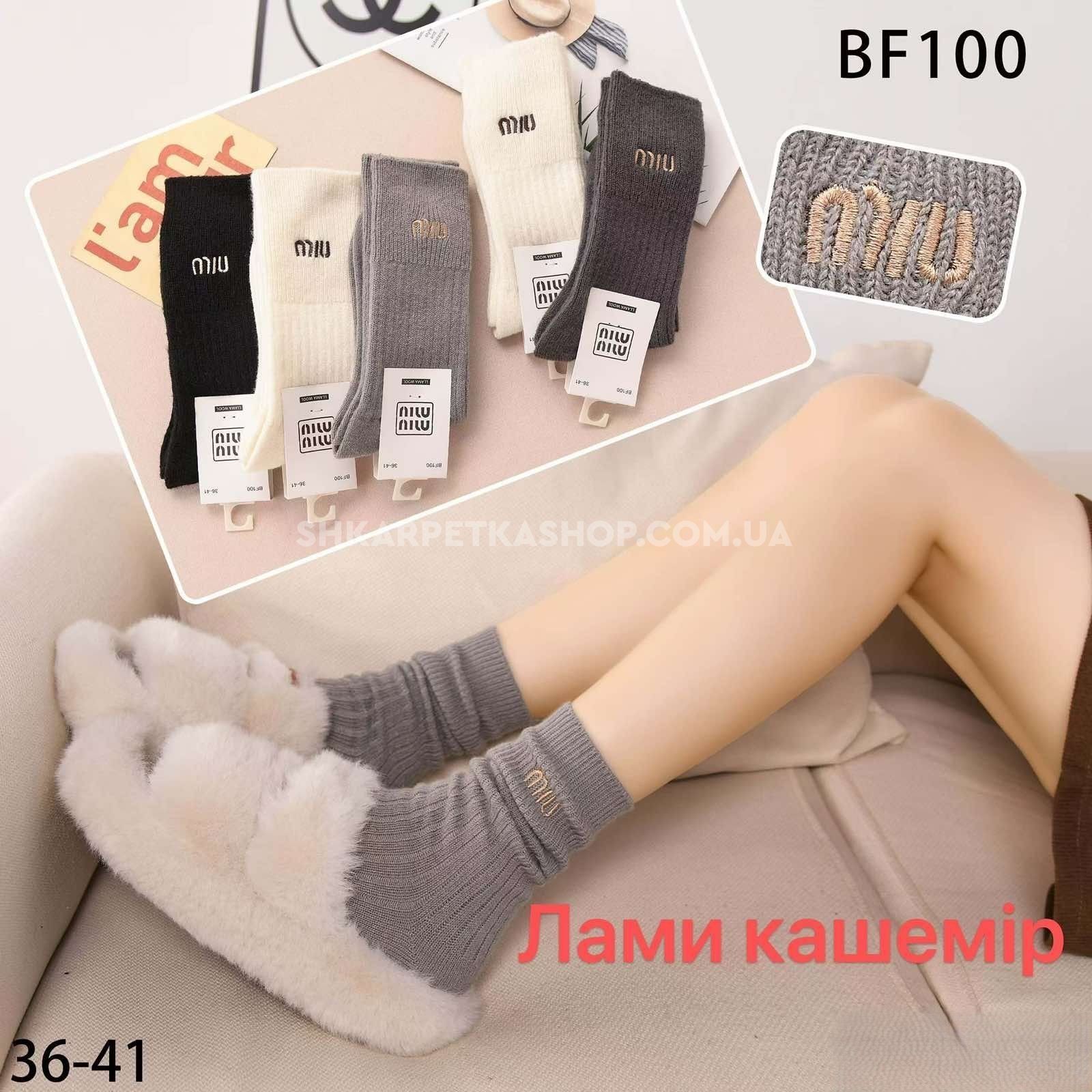 Шкарпетки "Miu miu/ Корона" ВF-100 вовна лами жіночі, р. 36-41 -асорті -(Високі однотонні в комбінований рубчик + на широкій резинці вишивка miu /бф-100) -уп. 10 шт