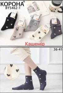 Шкарпетки "Корона" ВY- 5462-1 кашемір жіночі, р. 36-41 -(Середні з широкою гумкою в рубчик + серця по всій шкарпетці) -уп. 10 шт