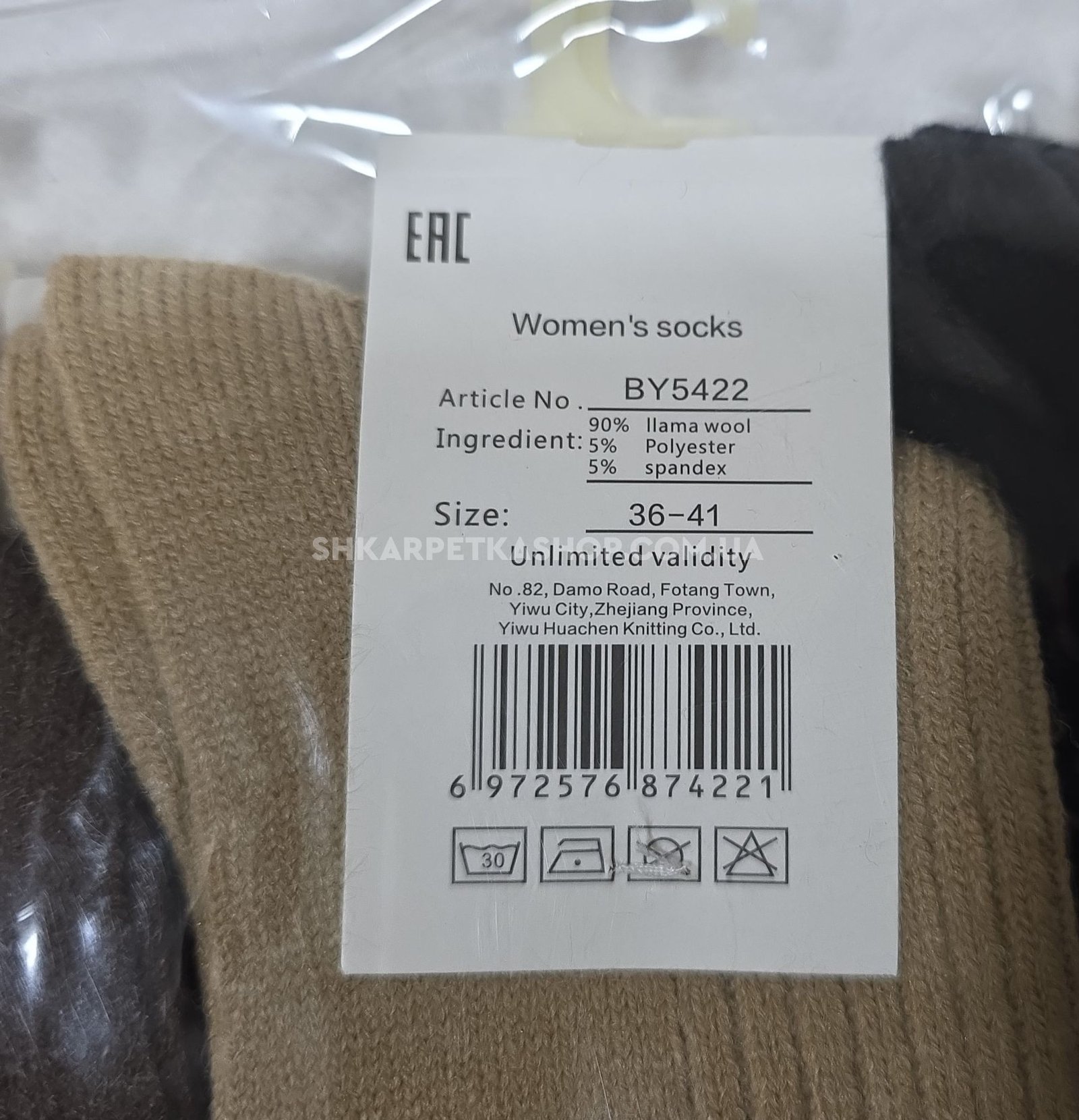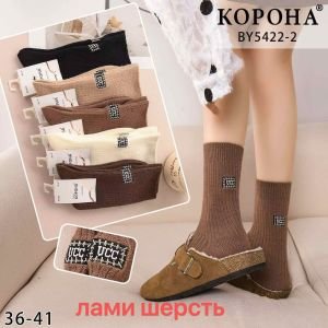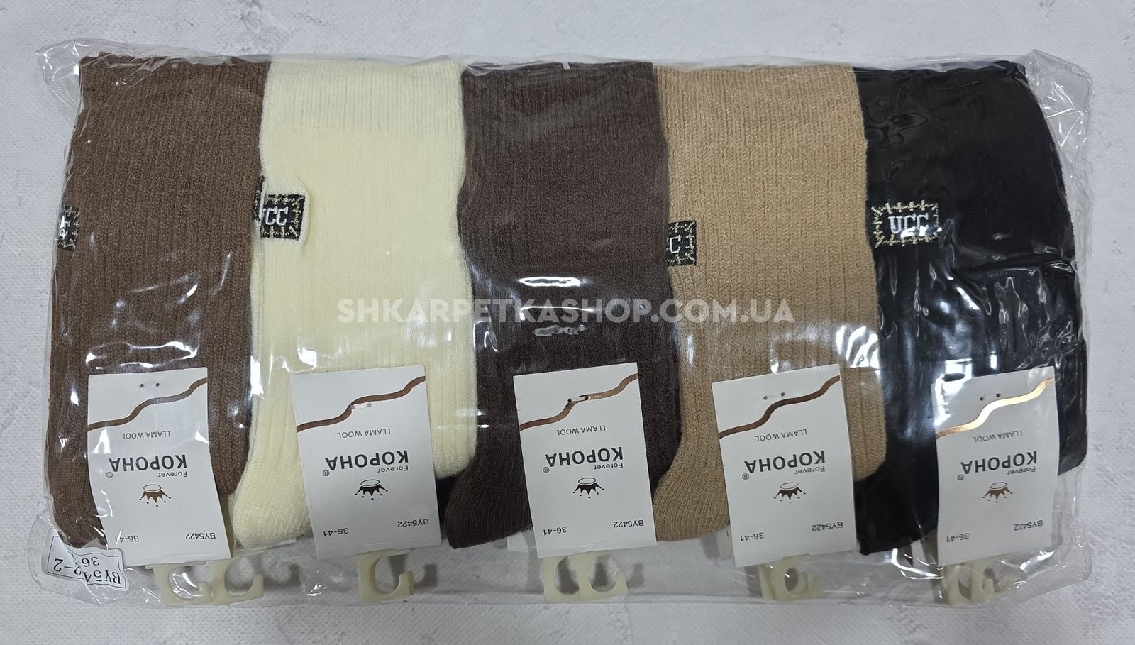Шкарпетки "Корона" ВY-5422-2 вовна лами жіночі, р. 36-41 -асорті -(Високі однотонні в рубчик +ззаду емблема з вишивкою UCC) -уп. 10 шт