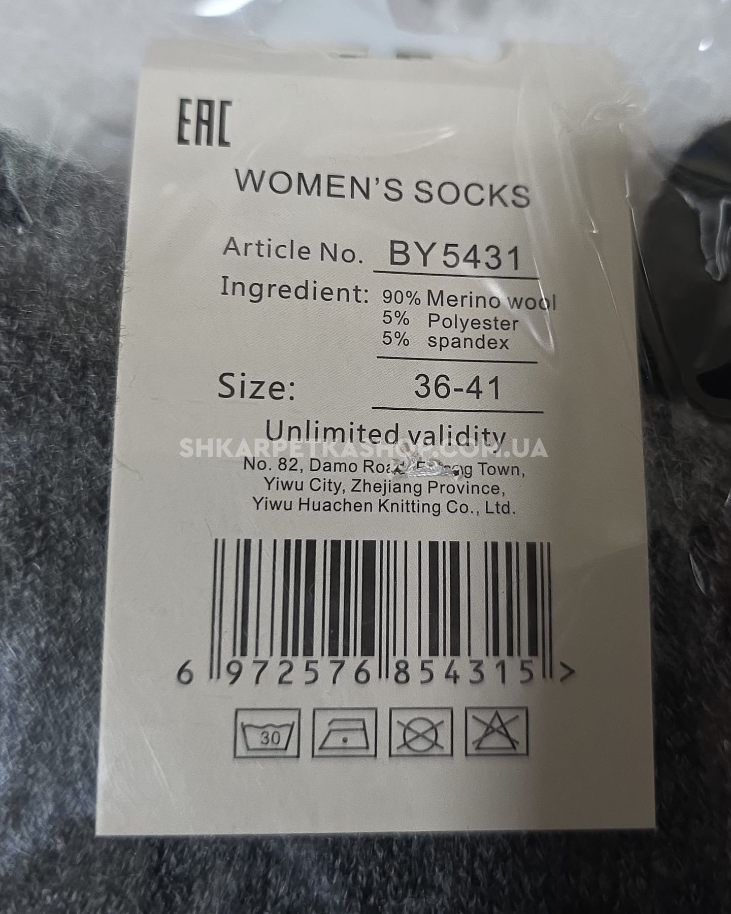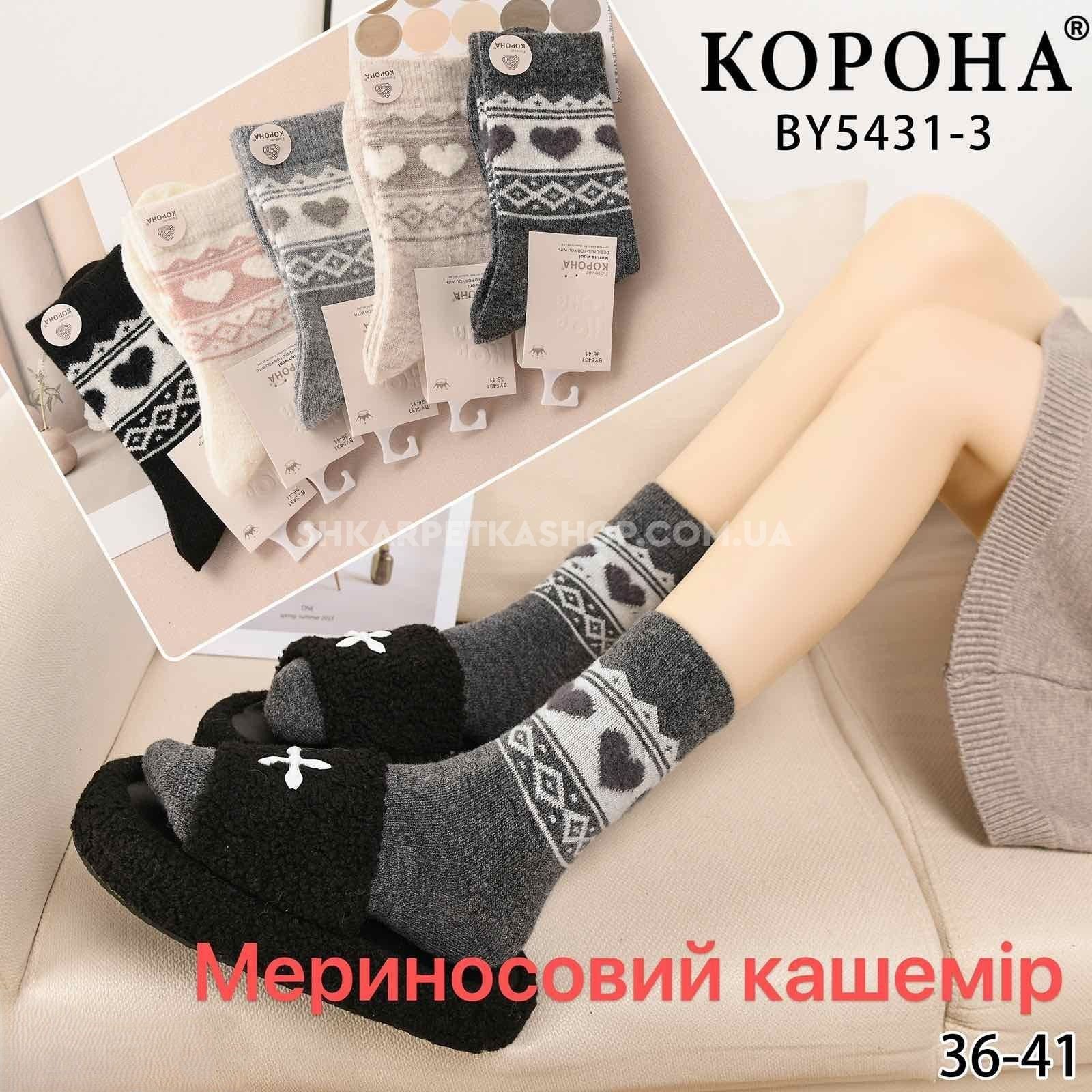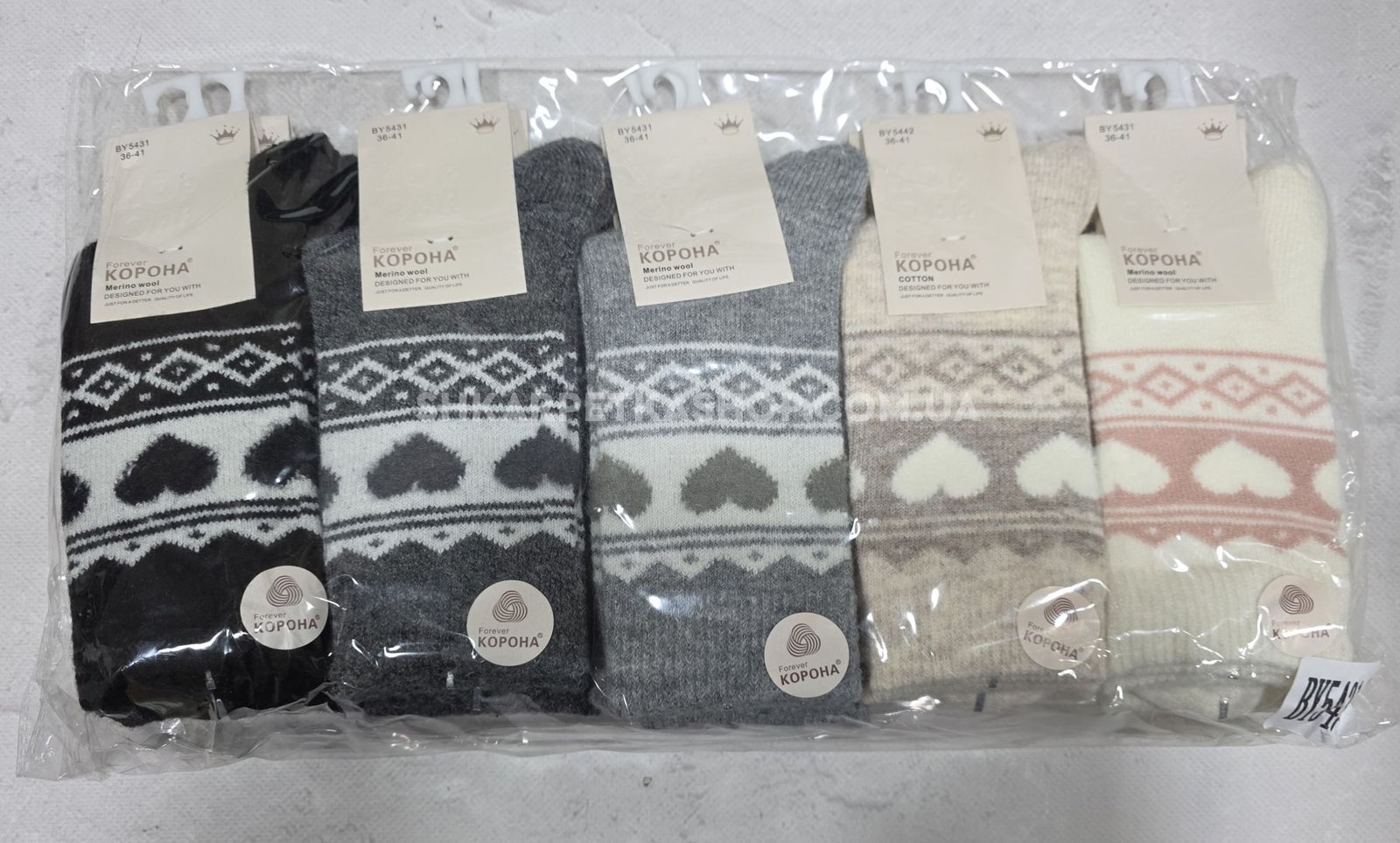 Шкарпетки "Корона" ВY-5431-3 мериносова (овеча) вовна жіночі, р. 36-41 -асорті -(Однотонні +під гумкою широка вставка з орнаментом та серцями) -уп. 10 шт
