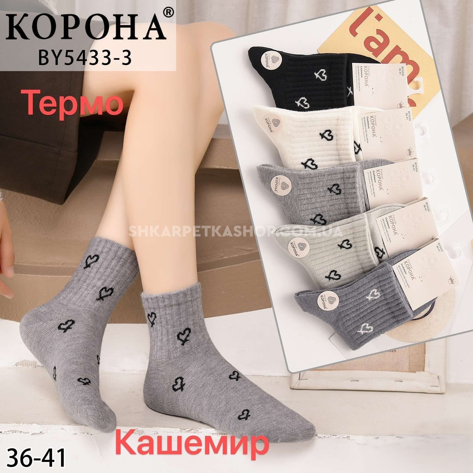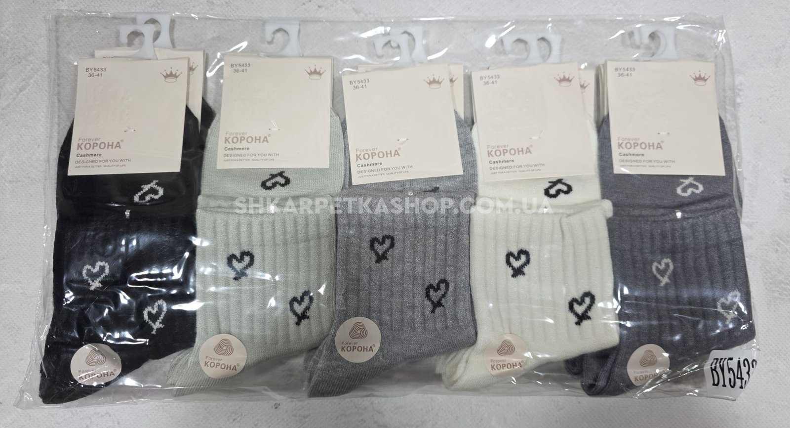 Шкарпетки "Корона" ВY-5433-3 кашемір жіночі, р. 36-41 -асорті -(Середні /однотонні з сердечками + широка гумка в рубчик) -уп. 10 шт