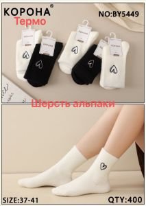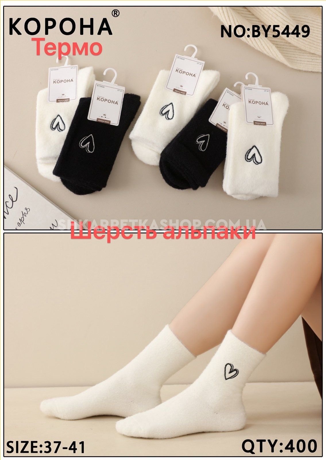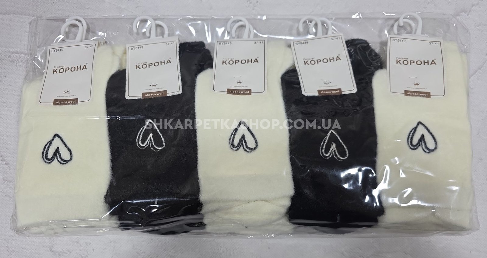 Шкарпетки "Корона" ВY-5449 вовна альпаки жіночі, р. 37-41 -асорті -(Чорні +білі /однотонні +збоку вишите серце) -уп. 10 шт