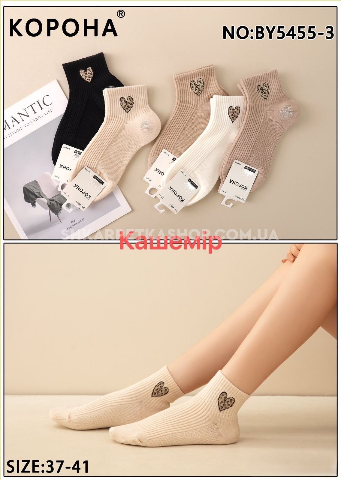 Шкарпетки "Корона" ВY-5455-3 кашемір жіночі, р. 37-41 -асорті -(Укорочені +тигрове серце /кавовий мікс) -уп. 10 шт