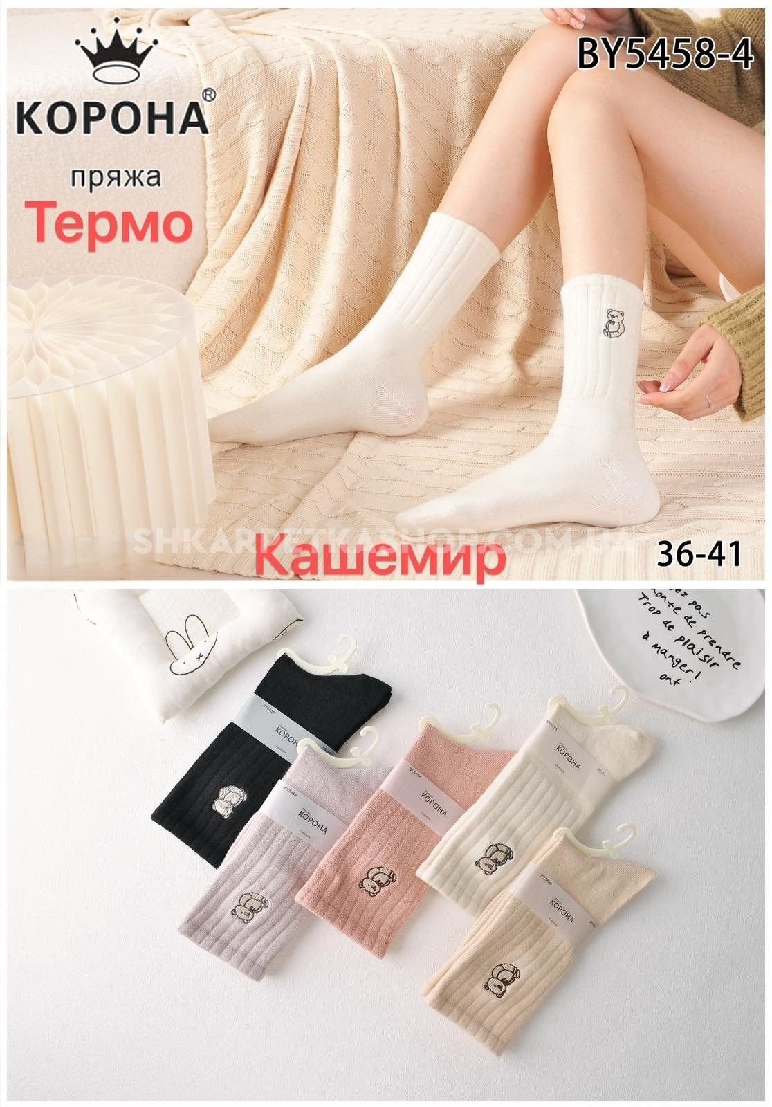 Шкарпетки "Корона" ВY-5458-4 термо кашемір жіночі, р. 36-41 -асорті -(Високі однотонні +на гумці в рубчик вишитий ведмедик) -уп. 10 шт