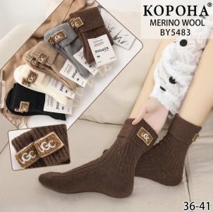 Шкарпетки "Корона" ВY-5483 вовна мериноса жіночі, р. 36-41 -асорті -(Однотонні в'язані у візерунок +з відворотом +емблема з написом UGC) -уп. 10 шт