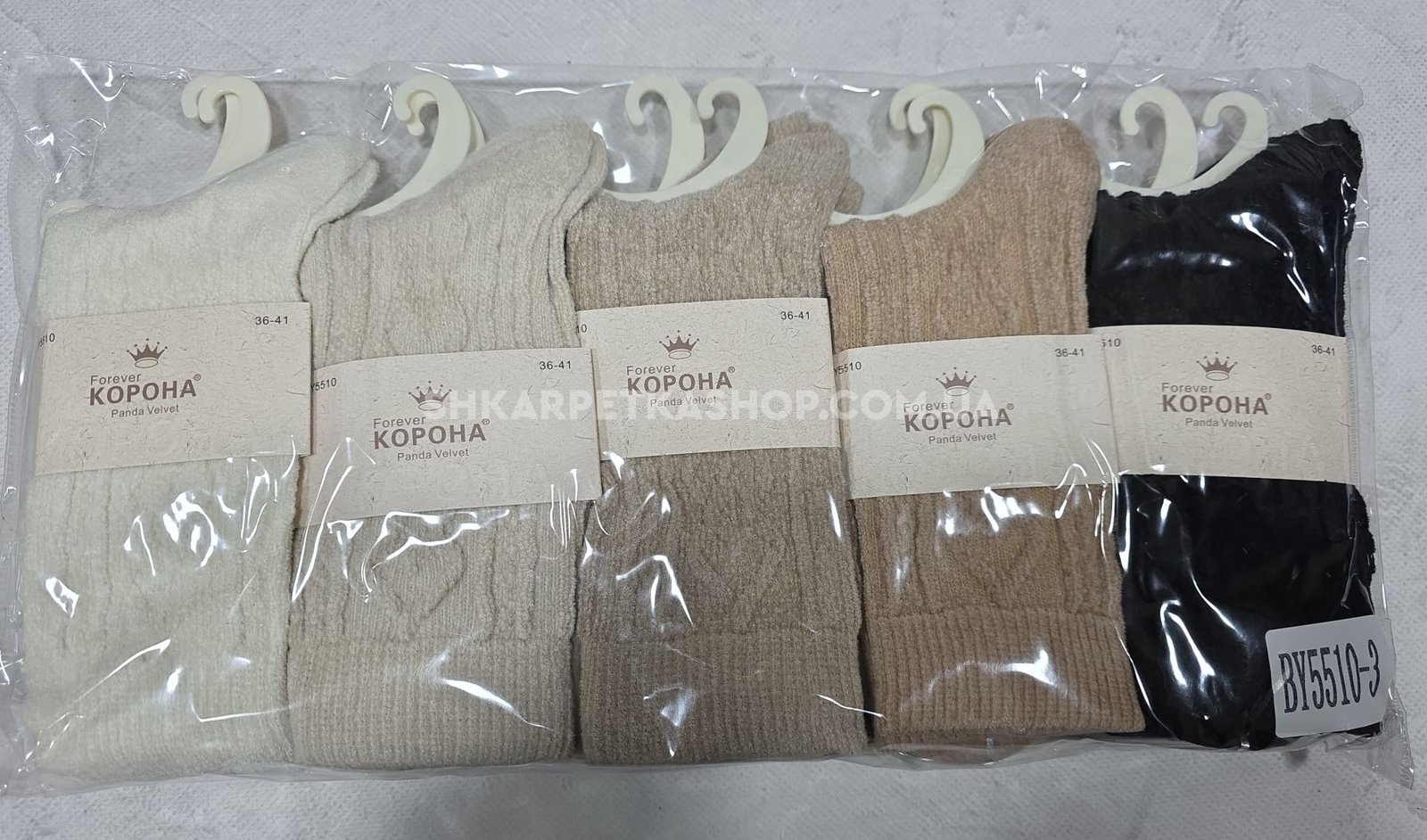Шкарпетки "Корона" ВY-5510-3 понда вельвет жіночі, р. 36-41 -асорті -(однотонні в рельєфній візерунок з ромбами) -уп. 10 шт