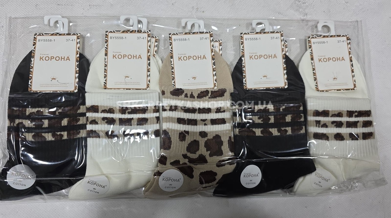 Шкарпетки "Корона" ВY-5558-1 стрейч/cotton жіночі, р. 37-41 -(Однотонні +на широкій гумці в рубчик леопардові смужки /вставки) -уп. 10 шт
