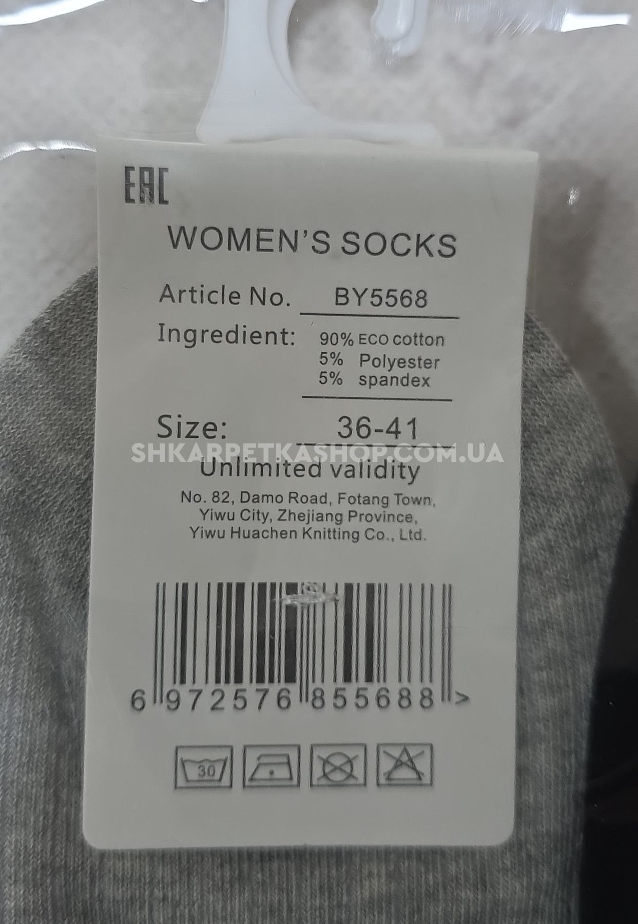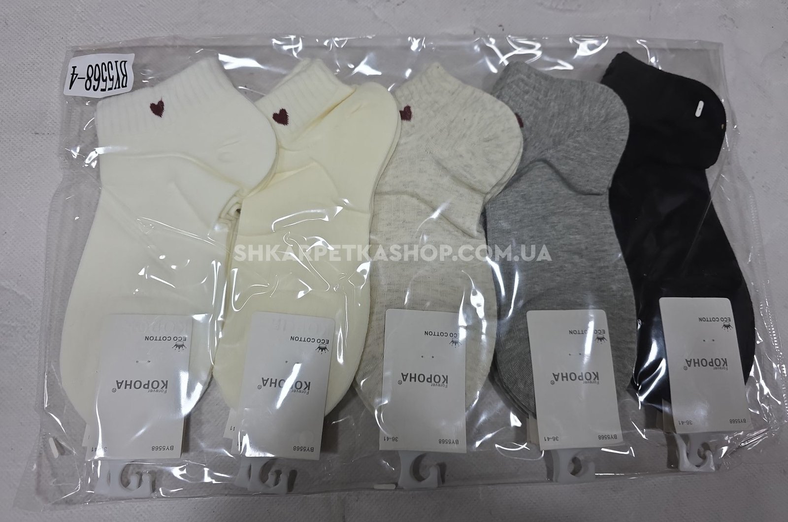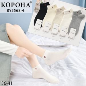 Шкарпетки "Корона" ВY-5568-4 стрейч /cotton жіночі, р. 36-41 -асорті -(Короткі/ однотонні в рубчик +збоку на резинці маленьке серце) -уп. 10 шт