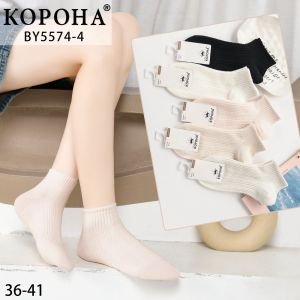 Шкарпетки "Корона" ВY-5574-4 стрейч /cotton жіночі, р. 36-41 -асорті -(Укорочені/ однотонні у візерунок з рубчика та косичок +широка гумка в рубчик) -уп. 10 шт