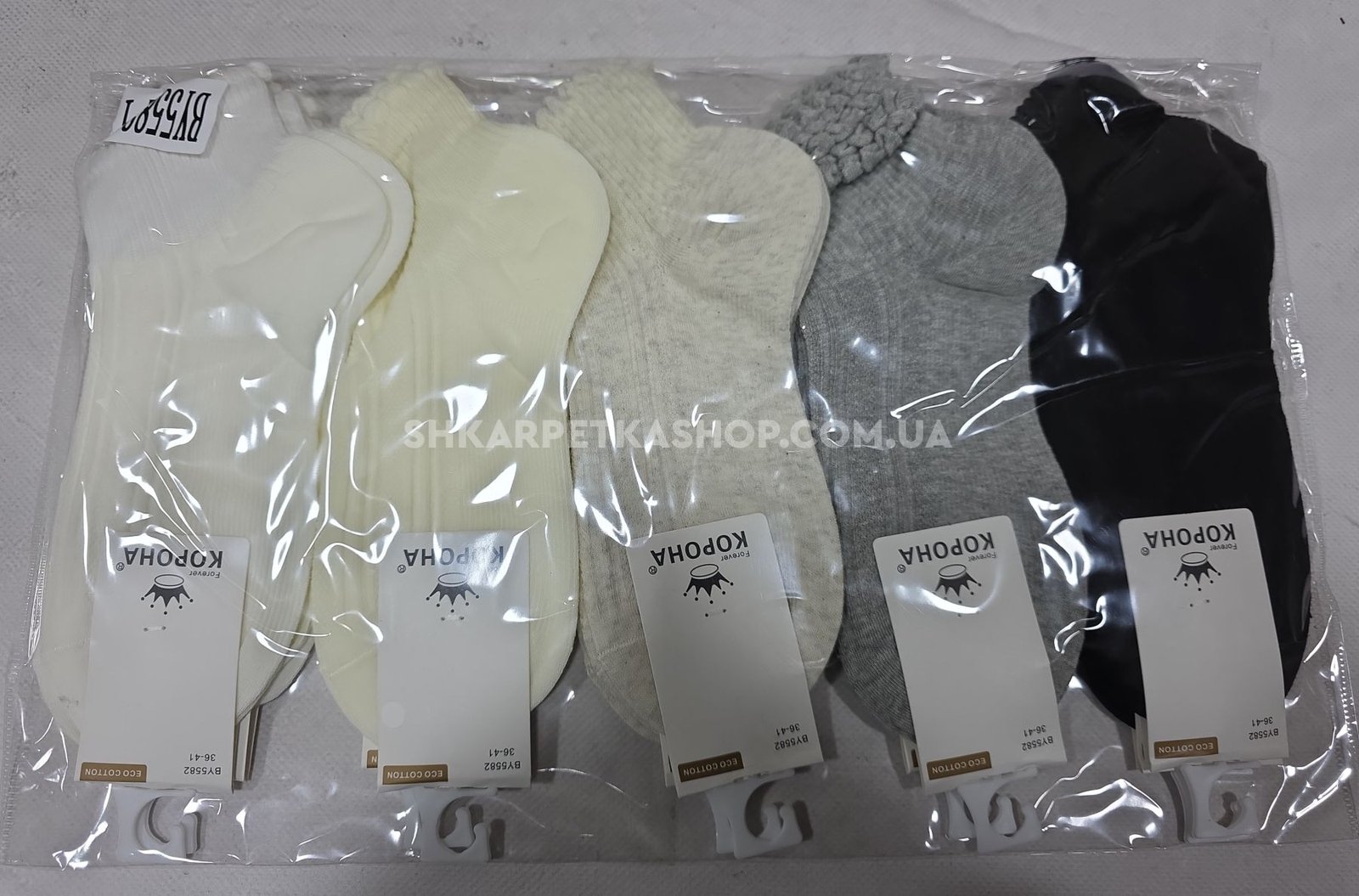 Шкарпетки "Корона" ВY-5582-1-Х стрейч /eko cotton жіночі, р. 36-41 -асорті -(Укорочені/ однотонні в комбінований візерунок з рубчиком +зверху хвилясті край на широкій гумці в рубчик) -уп. 10 шт