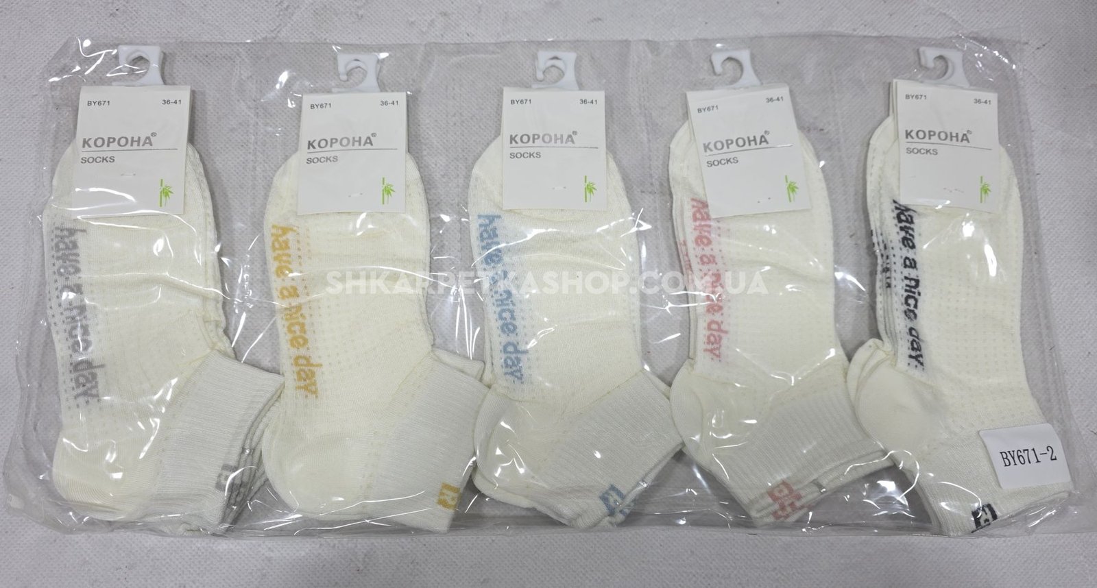 Шкарпетки "Корона" ВY-671-2 сітка /бамбук жіночі, р. 36-41 -(Сіточка /укорочені молочні +на широкій резинці в рубчик буква "R" +на підошві напис ) -уп. 10 шт
