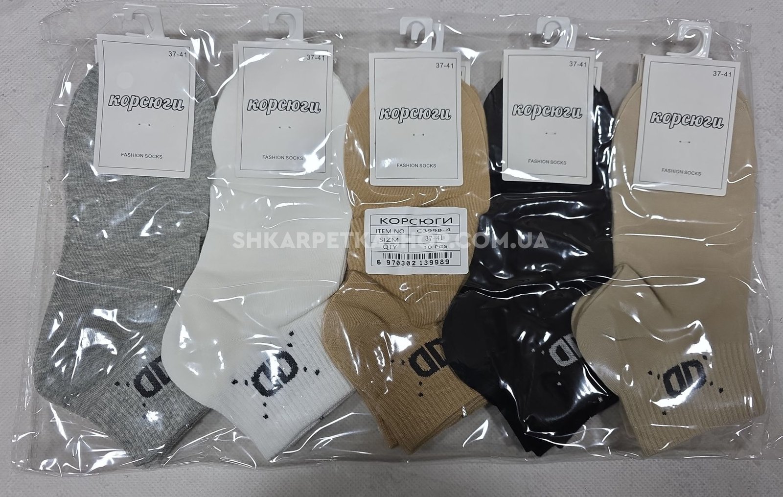 Шкарпетки "Корсюги" С-3998-4 стрейч /cotton жіночі, р. 37-41 -асорті -(Короткі /однотонні +на середній гумці в рубчик дві літери +крапки) -уп. 10 шт