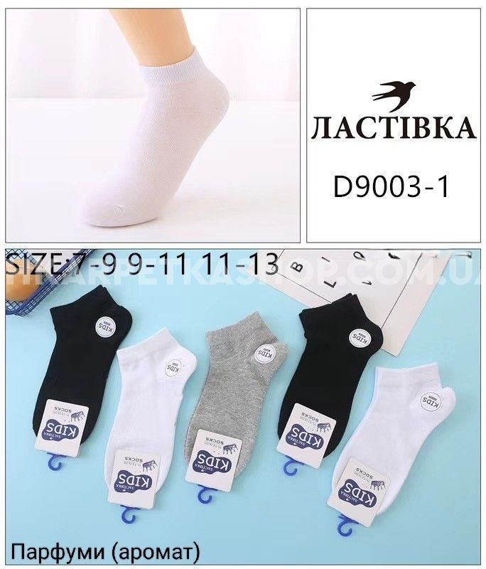 Шкарпетки "Ластівка" D-9003-1 стрейч дитячі р. 7-9, 9-11, 11-13 років -асорті -(Короткі/ однотонні -три кольори -дит.) -уп. 10 шт