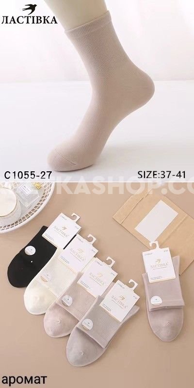 Шкарпетки "Ластівка" С-1055-27 стрейч/cotton парфумовані жіночі, р. 37-41 -асорті -(Середні /однотонні +широка гумка в дрібний рубчик) -уп. 10 шт