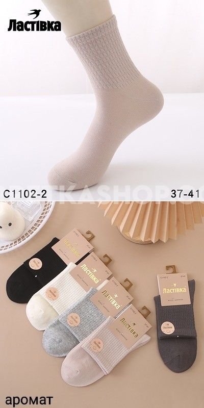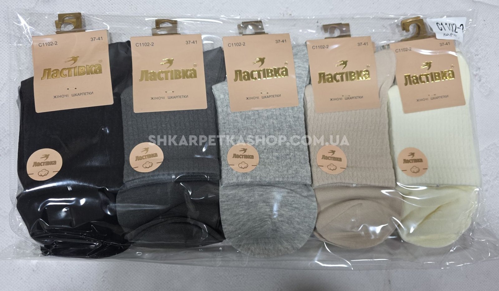 Шкарпетки "Ластівка" С-1102-2 стрейч /cotton парфумовані жіночі, р. 37-41 -асорті -(Однотонні з широкою гумкою у дрібний рельєфний візерунок) -уп. 10 шт