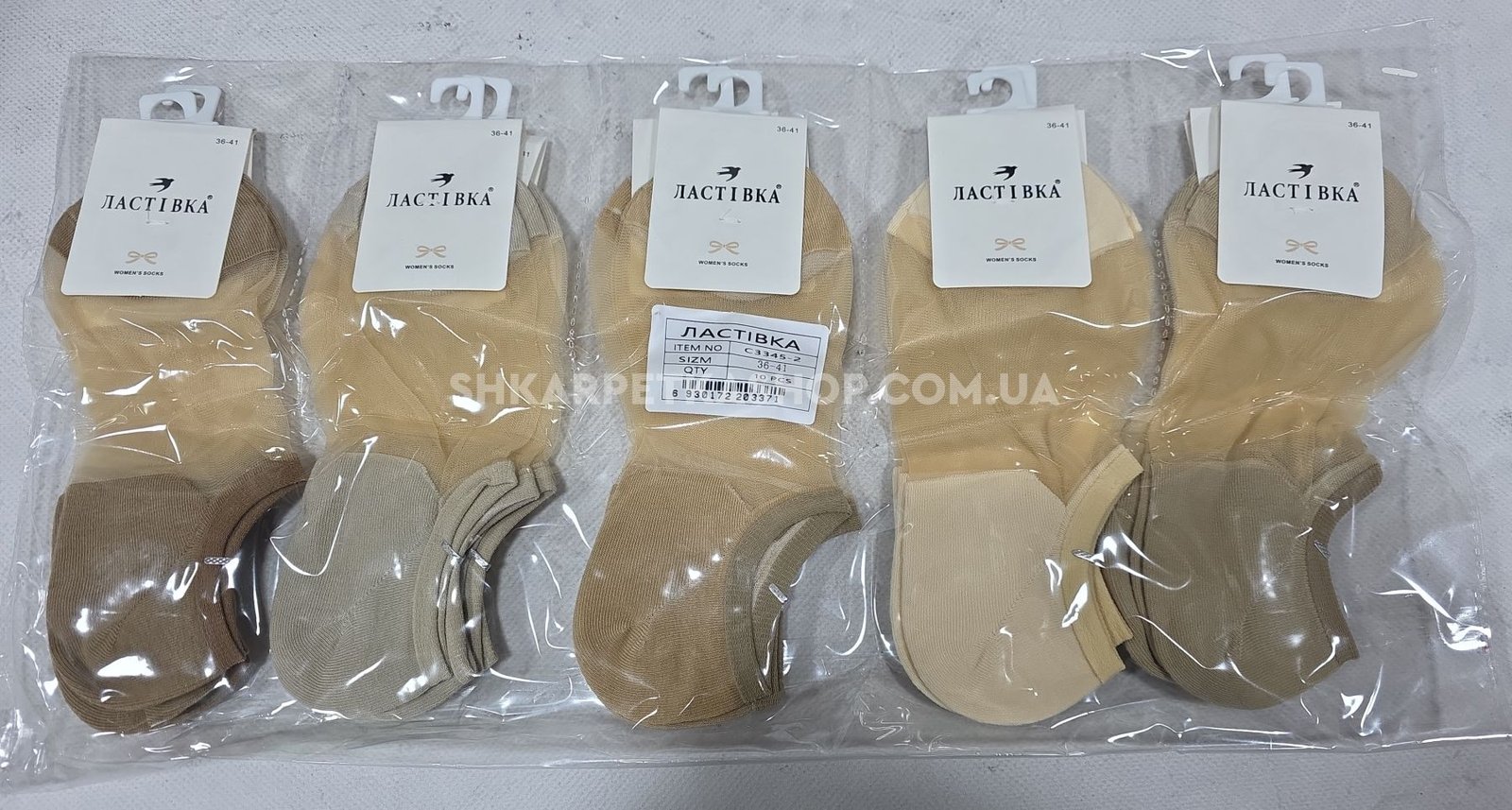 Шкарпетки "Ластівка" С-3345-2 nylon+cotton жіночі, р. 36-41 -(Бежевий мікс ультракороткі з нейлоновою серединою +мисок і п'ята бавовняні) -уп. 10 шт