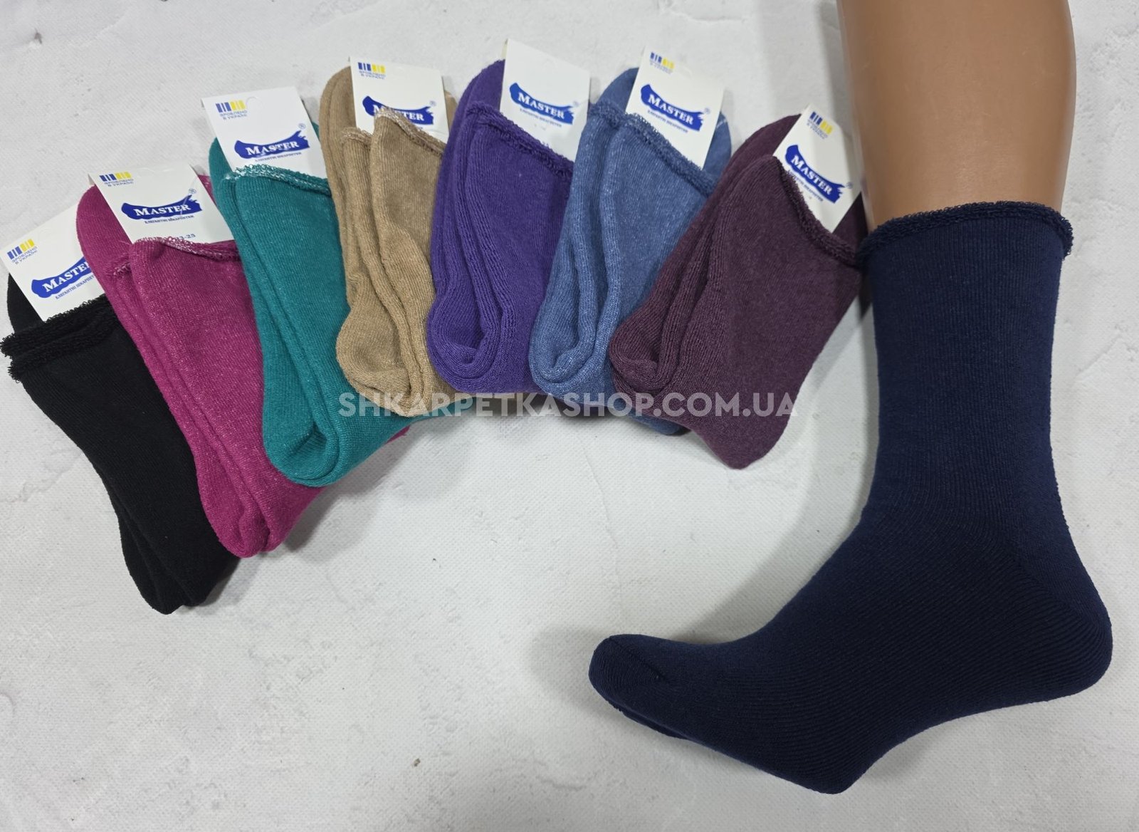 Шкарпетки "Master" 4104-01 махрові жіночі "Без резинки" р. 23-25 -асорті -(Б/р -однотонні із закрученим верхом -махра) -уп. 12 шт