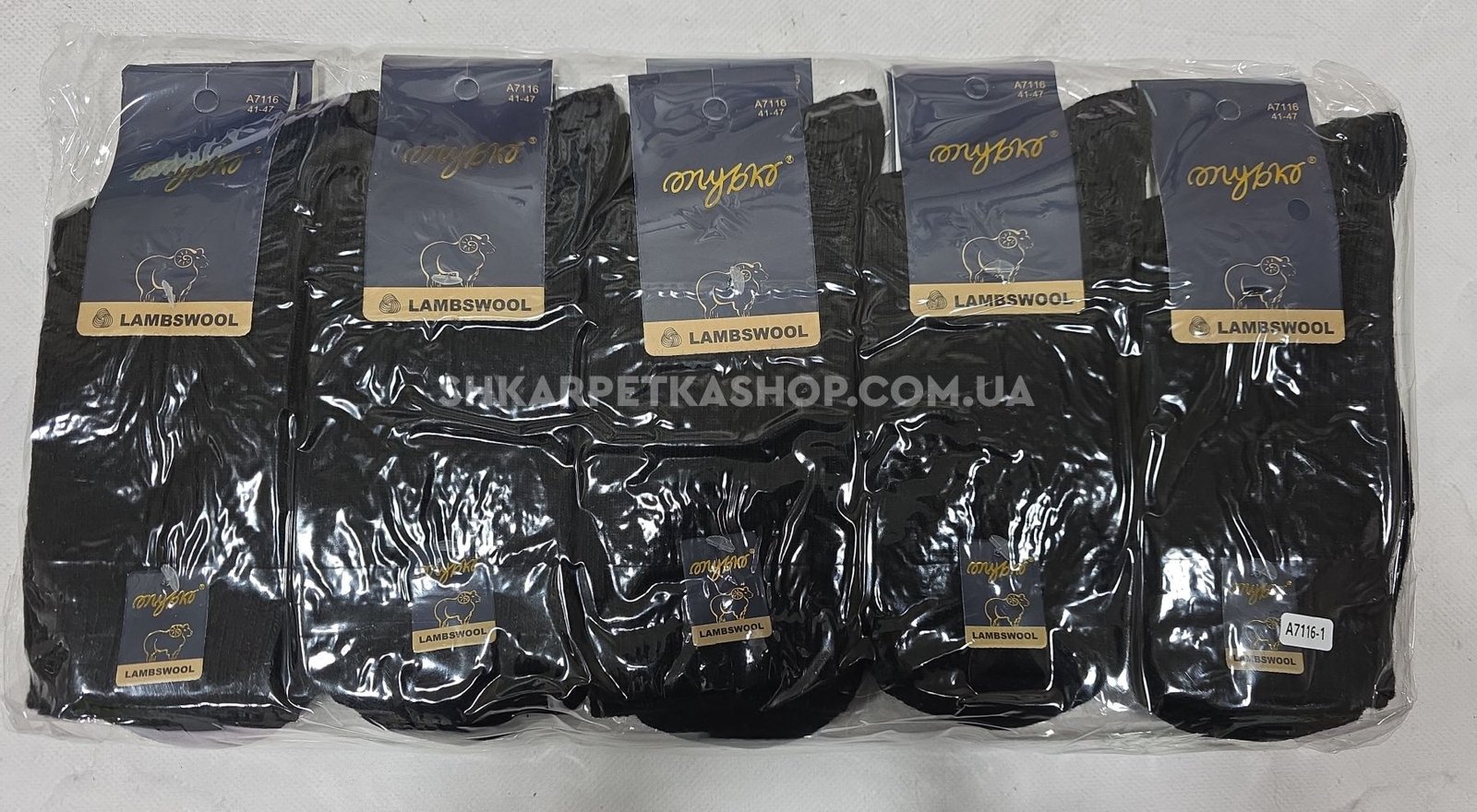 Шкарпетки "MYBKO" А-7116-1 вовняні чоловічі, р. 41-46 -(чорні /однотонні) -уп. 10 шт