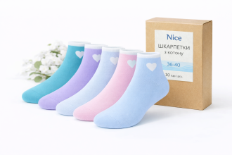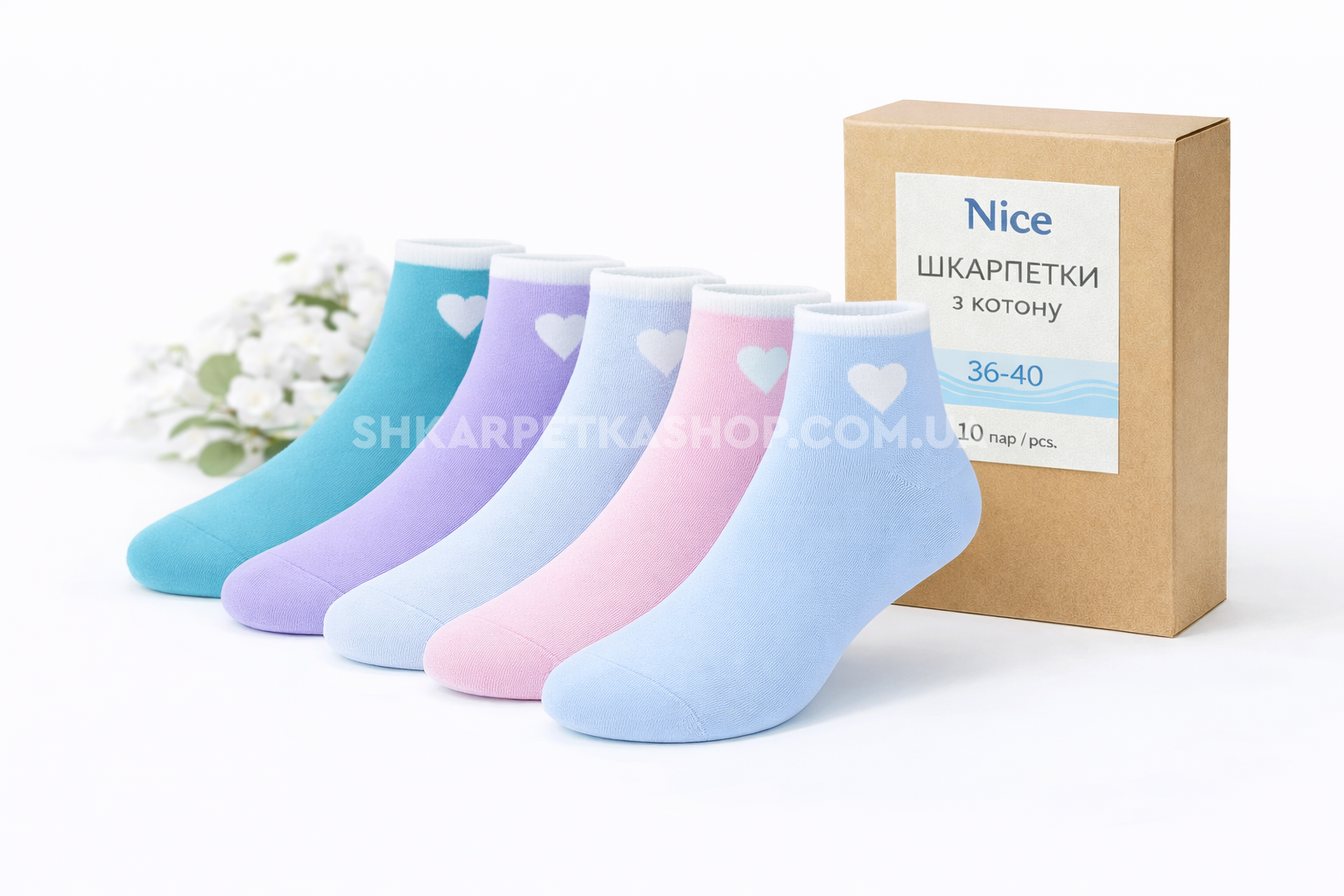 Шкарпетки "Nice" 500-S-COT махрові котонові жіночі, р. 36-40 -асорті -(Махра -укорочені /однотонні -кольорові +на гумці обідок з норки +збоку біле серце) -уп. 10 шт