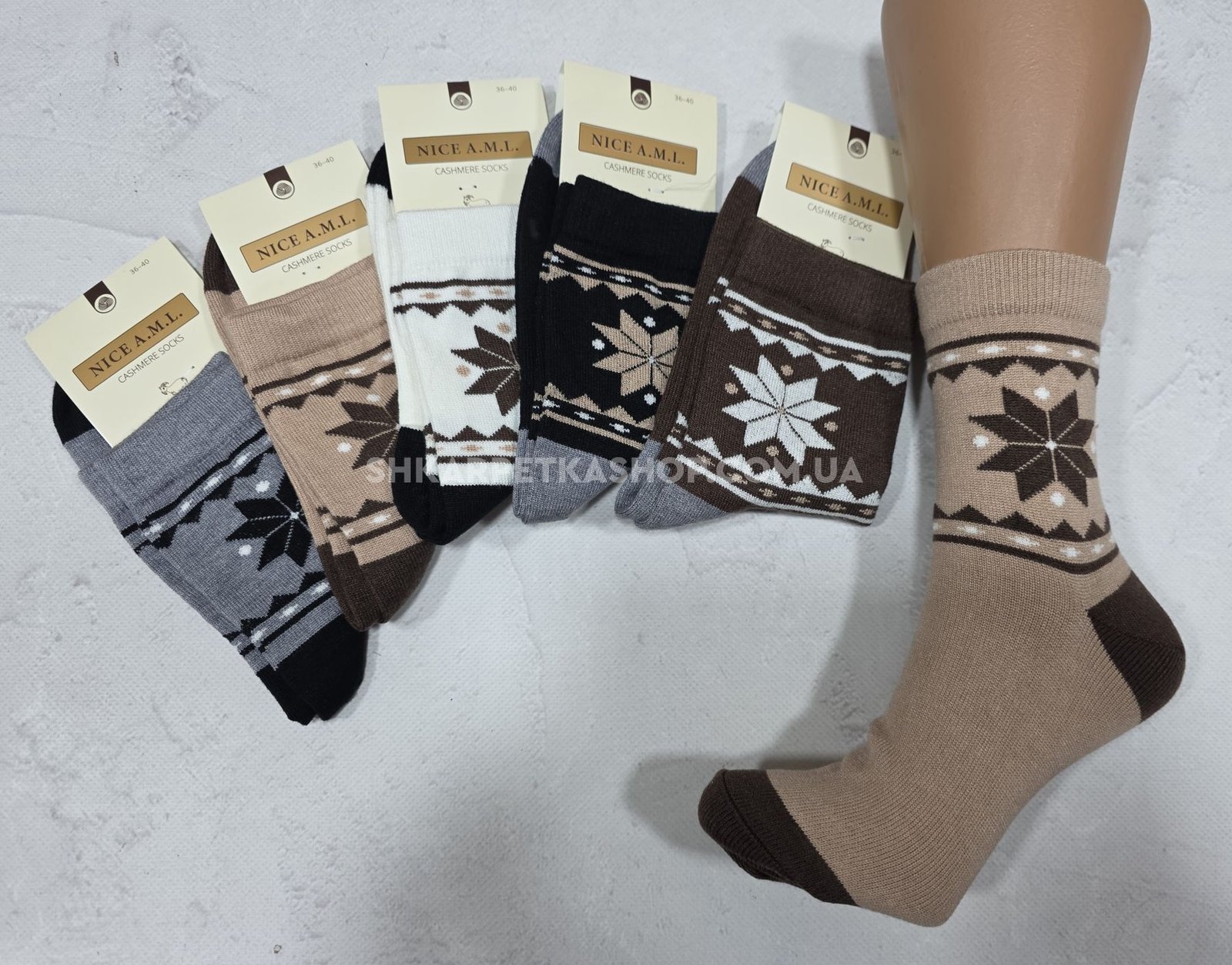 Шкарпетки "NICE A.M.L." 801 кашемірові жіночі, р. 36-40 -асорті -(Кашемір -високі /під гумкою велика гостра сніжинка між дрібним орнаментом) -уп. 10 шт