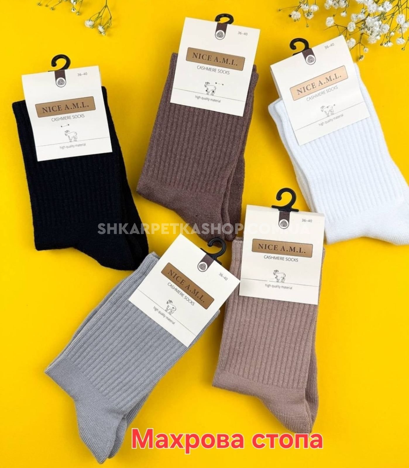Шкарпетки "NICE A.M.L." 823 кашемірові напівмахрові/ махровий слід жіночі, р. 36-40 -асорті -(Кашемір високі +махрова підошва /стопа -однотонні з високою високою гумкою в рубчик) -уп. 10 шт