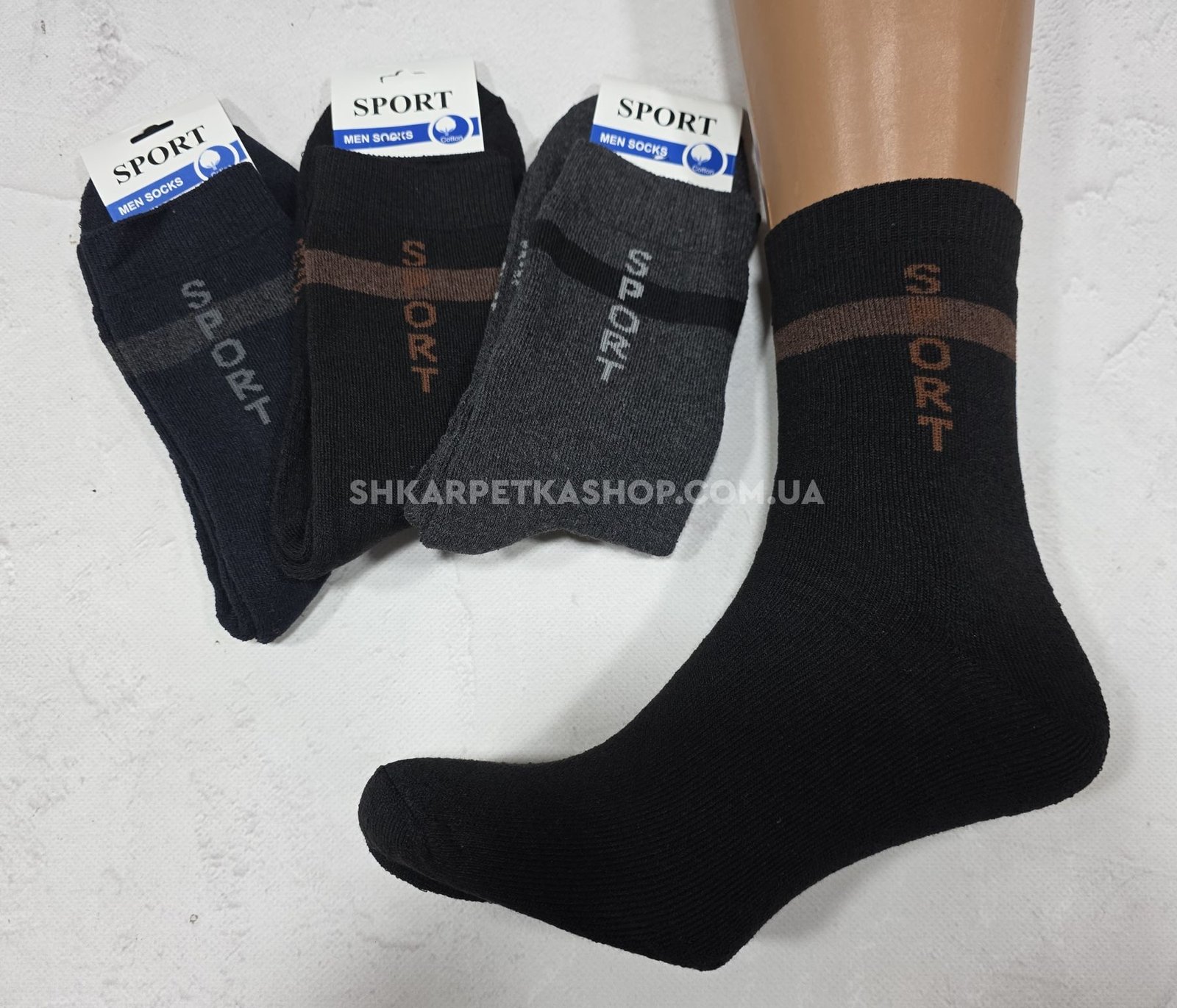 Шкарпетки "Nice-Thermo socks" 505-MIX-SPORT махрові чоловічі, р. 39-42, 42-45 -(махра /асорті -з вишивкою SPORT та смужкою) -уп. 12 шт