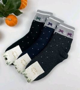 Шкарпетки "NiceSocks" 501-BANT махрові жіночі, р. 36-40 -асорті -(Махра -темні +на сірій вставці бантики + крапки по всій шкарпетці) -уп. 12 шт