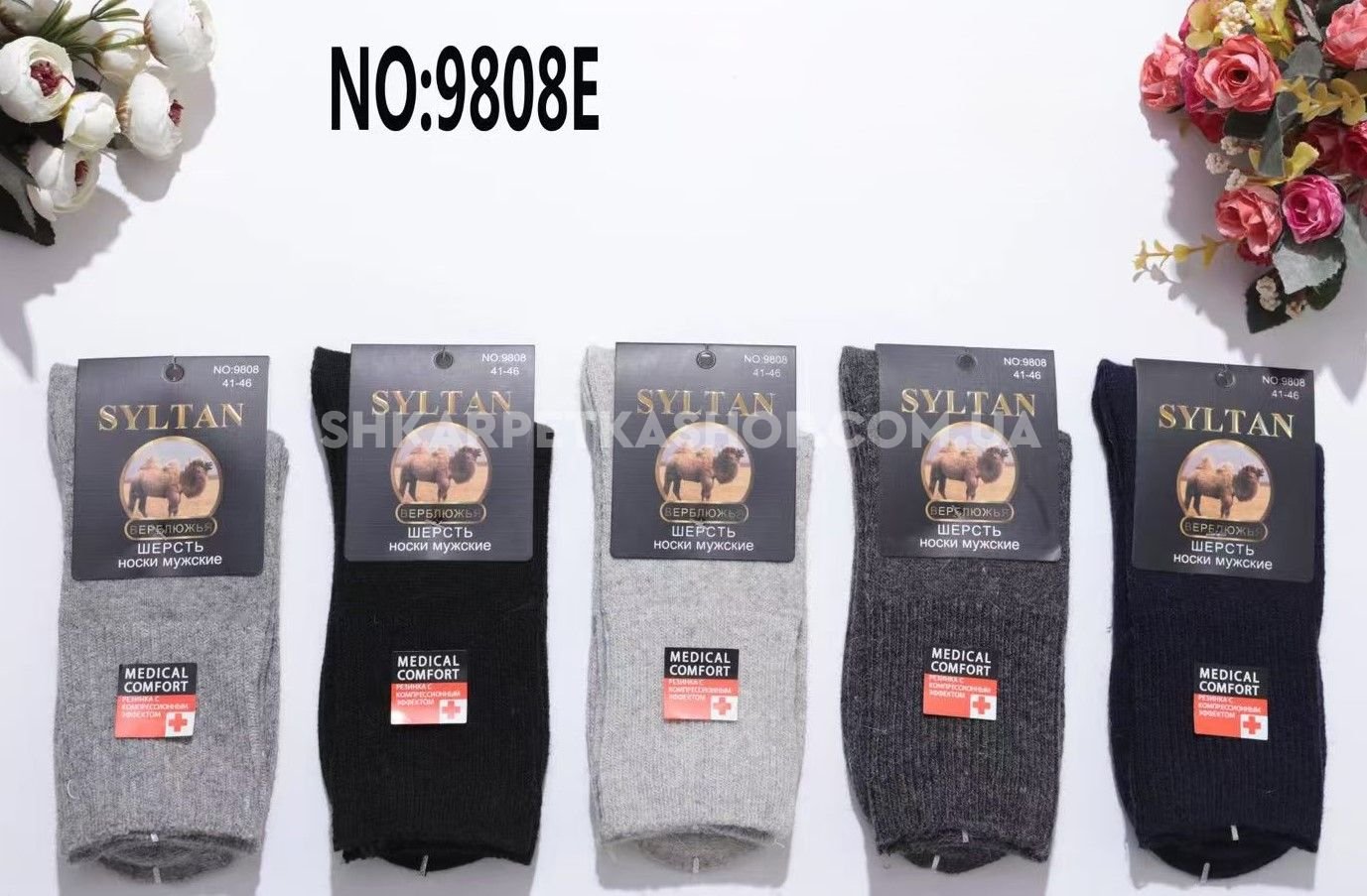 Шкарпетки "SYLTAN" 9808-Е термо верблюжя вовна "медичні з ослабленою гумкою" чоловічі, р. 41-46 -(асорті /однотонні) -уп. 12 шт