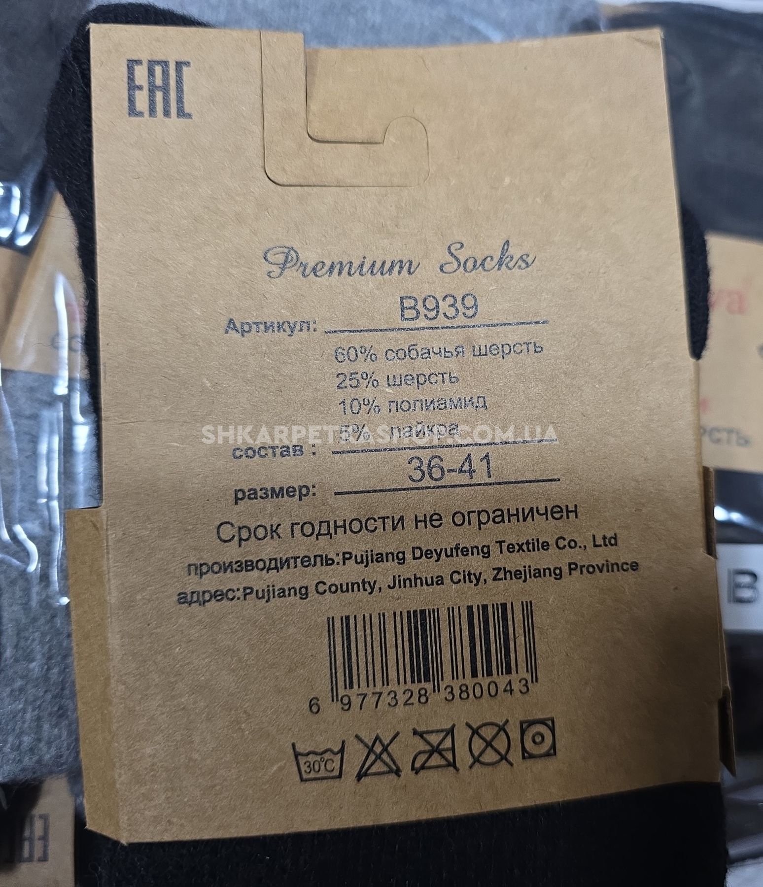 Шкарпетки "Tafinceva" В-939 собача шерсть на махрі жіночі, р. 36-41 -(Однотонні/ високі -темний мікс) -уп. 10 шт