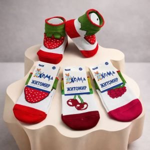 Шкарпетки "Хома /демі" 814-0 дитячі -бавовна на розмір за довжиною стопи: 8-10, 10-12 -асорті -(ягідки -малинка, вишеньки, полуничка -стрейч)